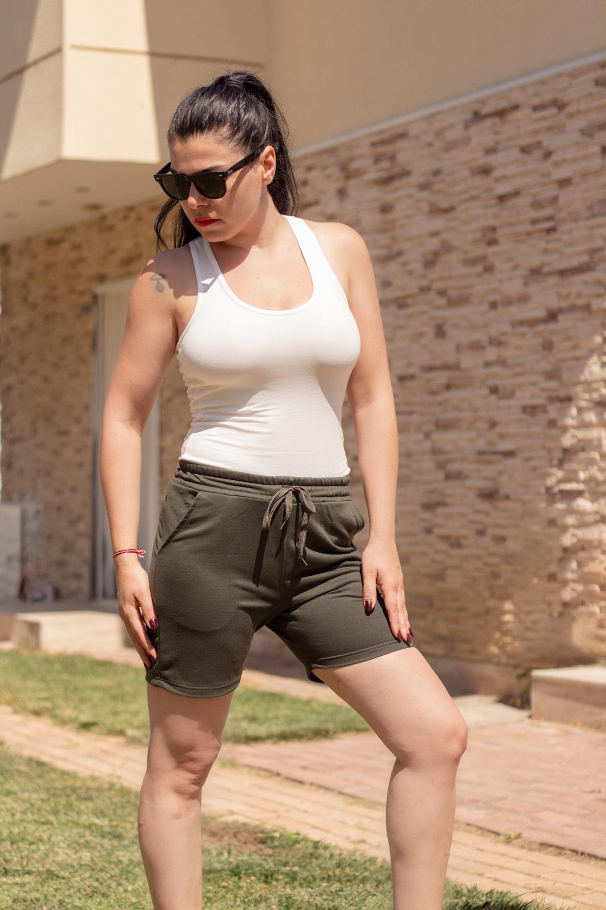 Kadın Haki Kısa Penye Belden İpli Şort 21KSRTKPEN