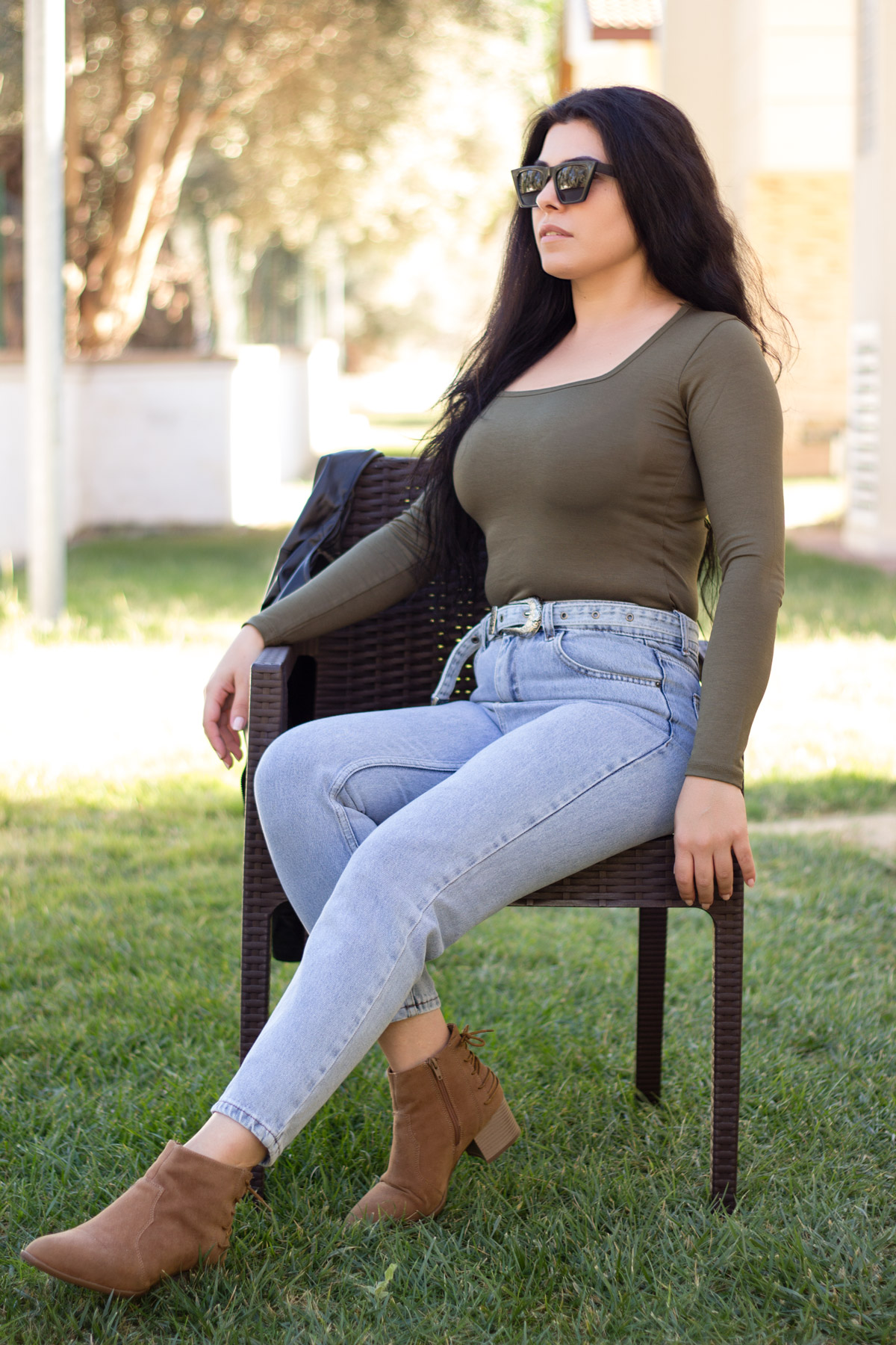EtiketlerKadın Haki Uzun Kollu %100 Pamuk Kare Yaka İnce Body 20KBDYBKRE