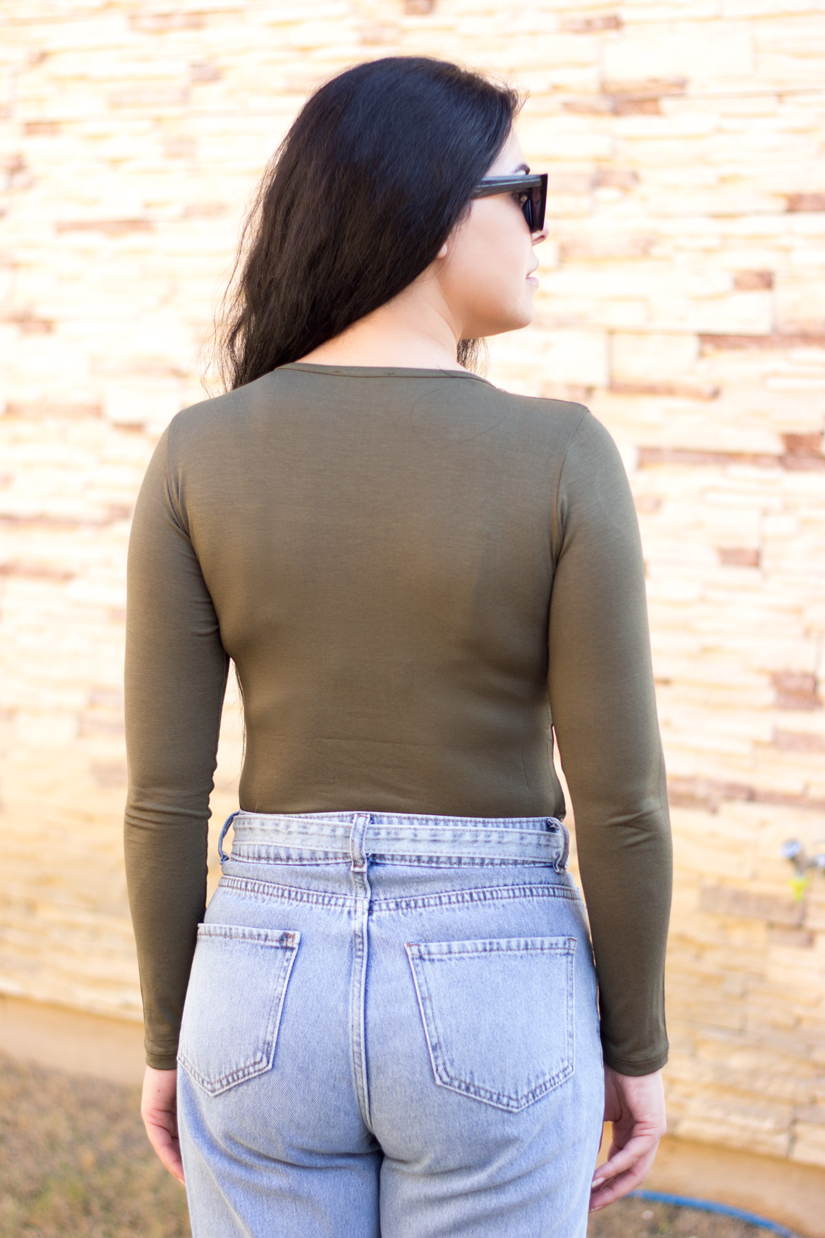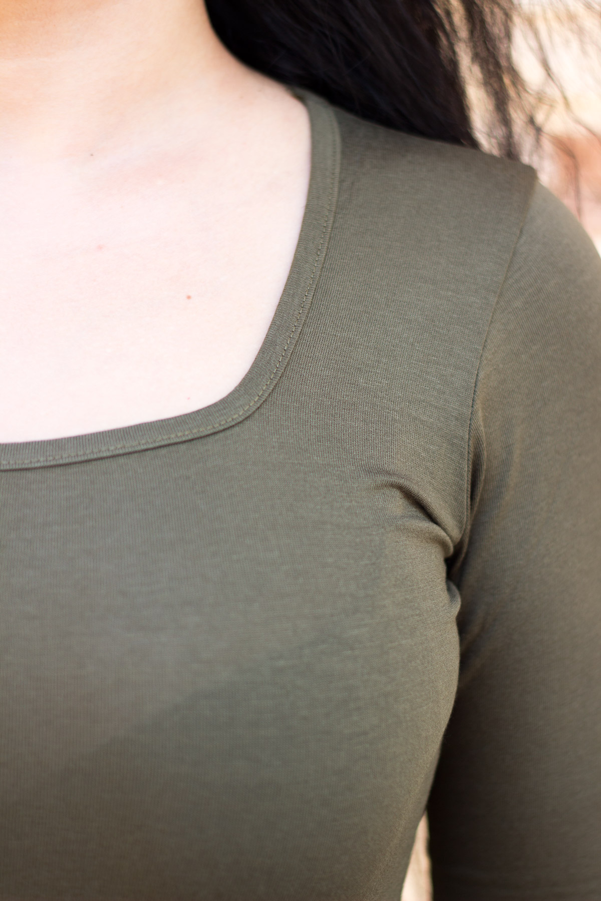 Kadın Haki Uzun Kollu %100 Pamuk Kare Yaka İnce Body 20KBDYBKRE