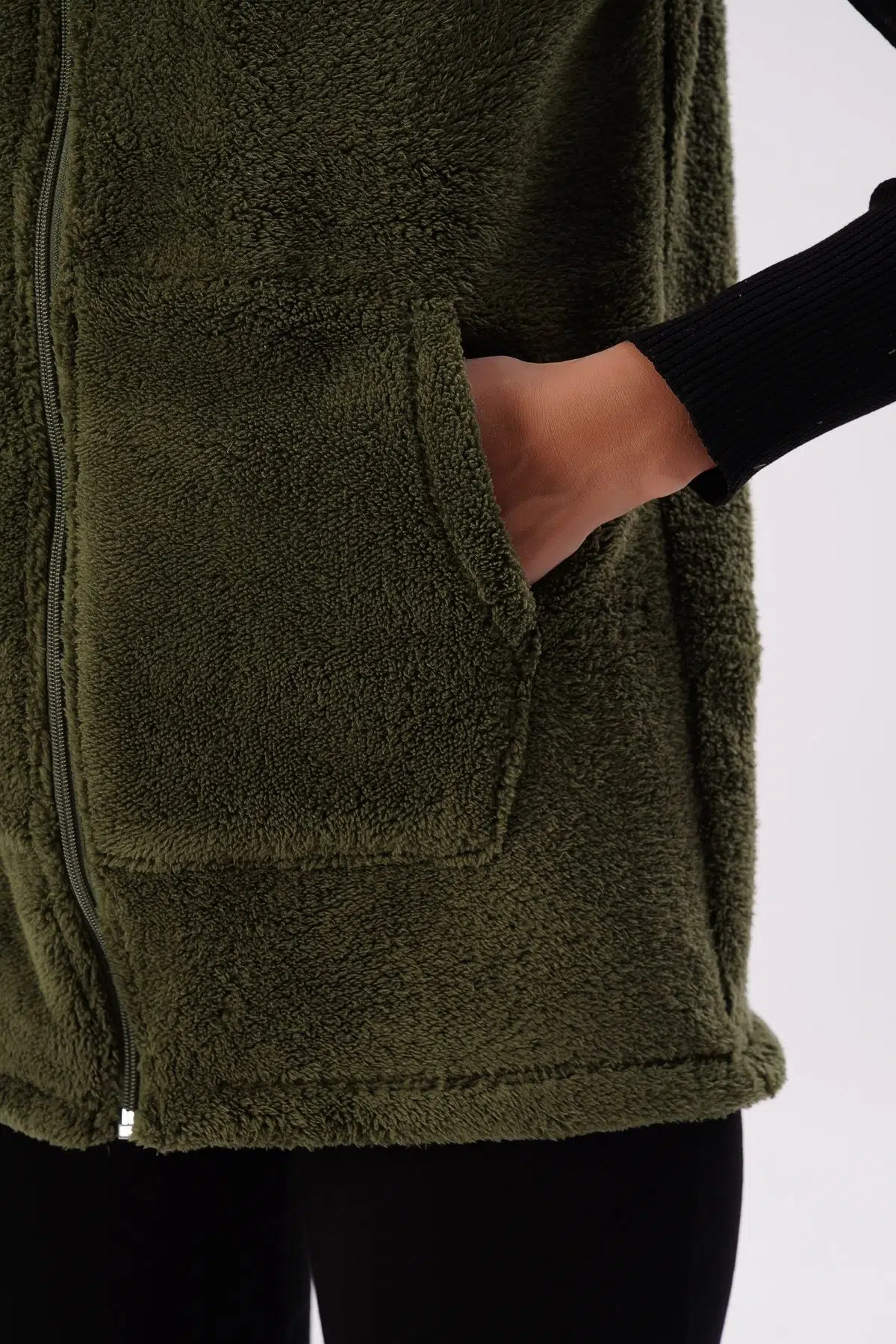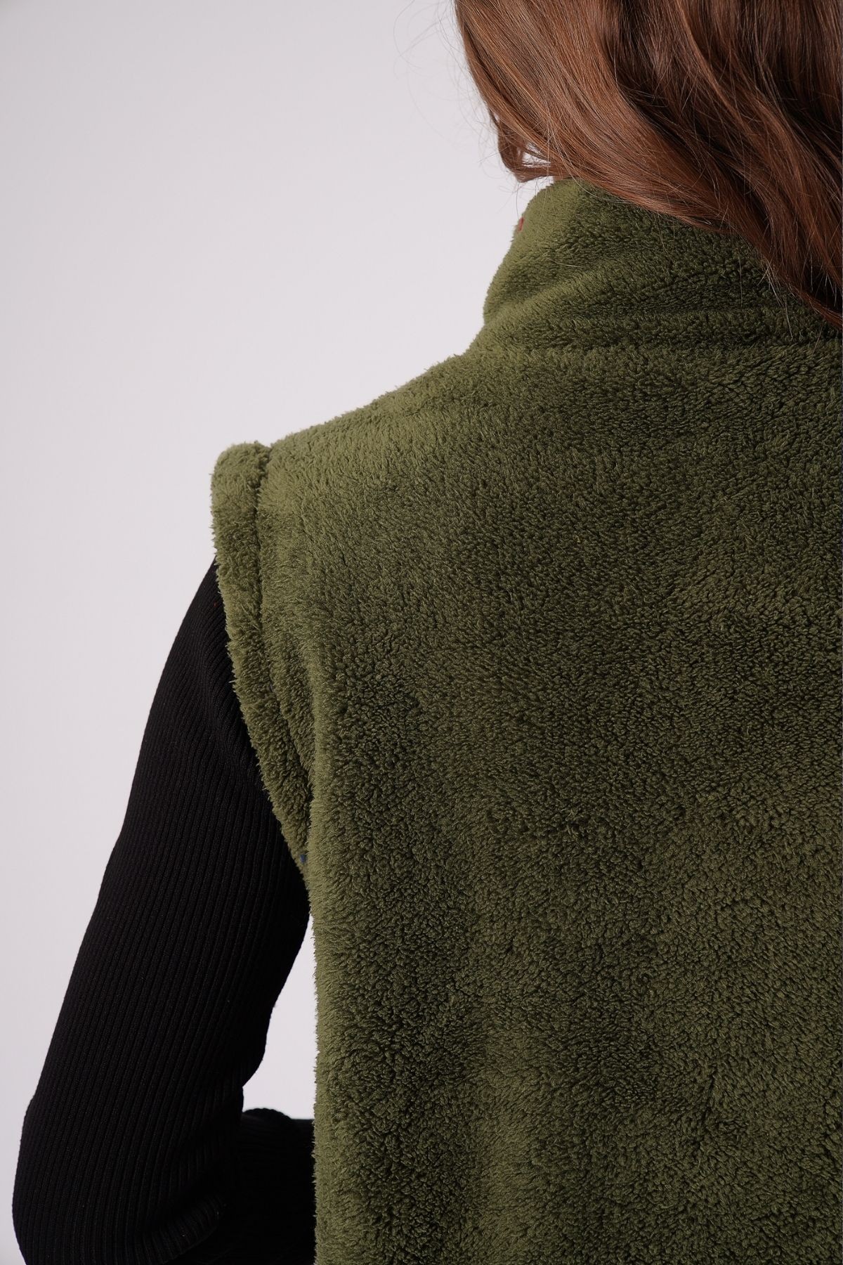 Çok yumuşak formda peluş yelek sıcak tutar. | Very soft form plush vest keeps you warm.