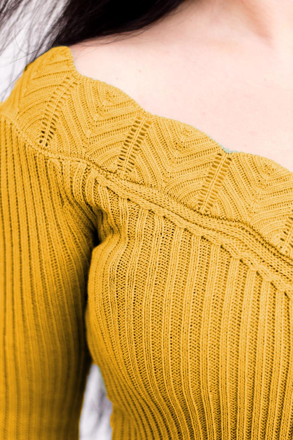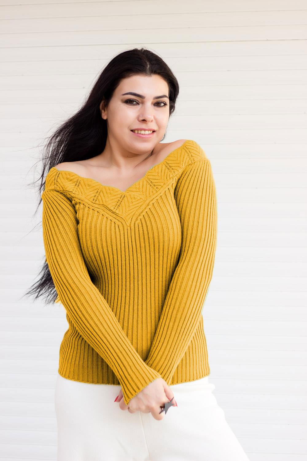 Kadın Hardal Ön Arka V Yaka Fitilli Tiko Kazak 20KKZKVALK