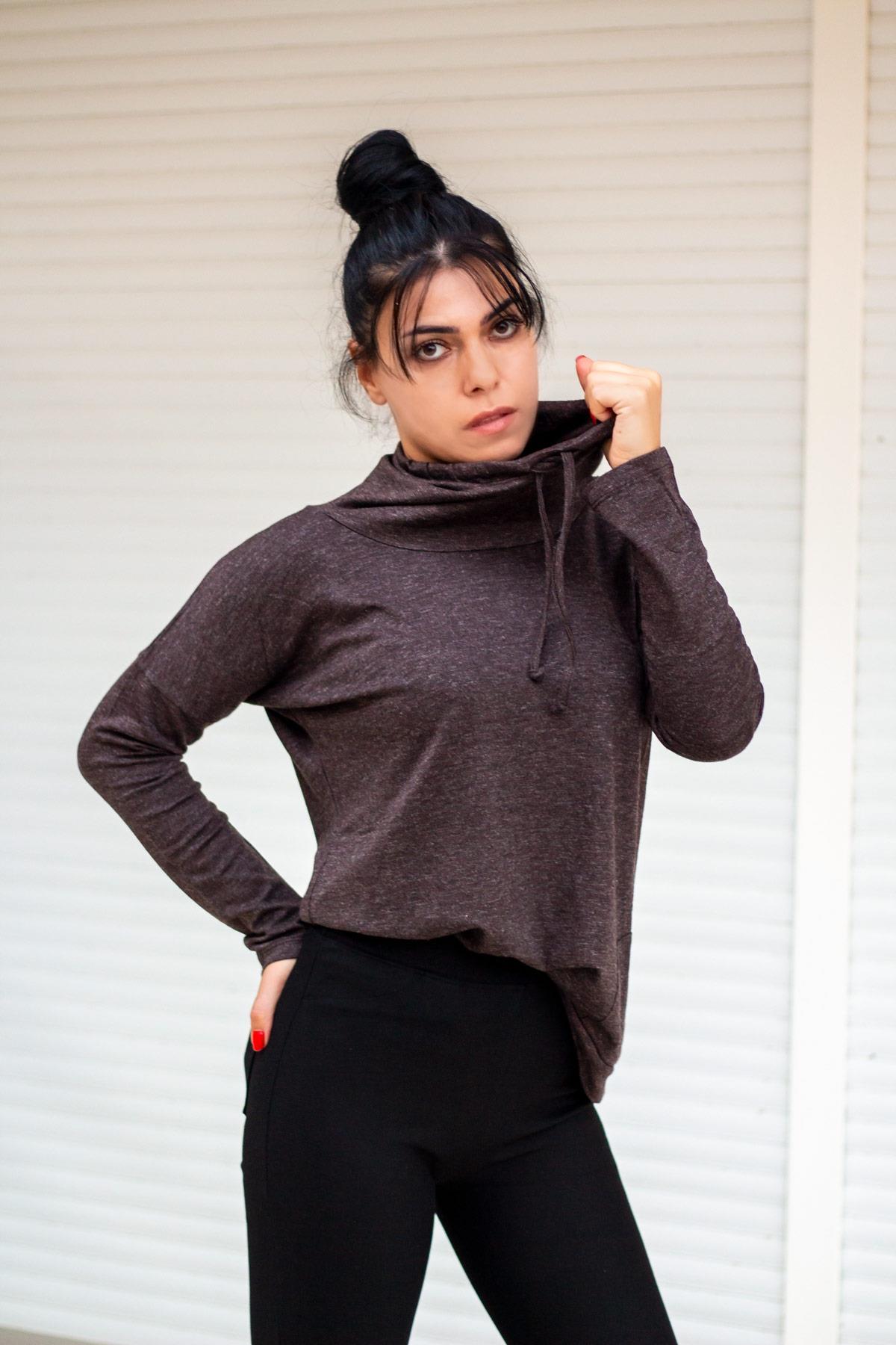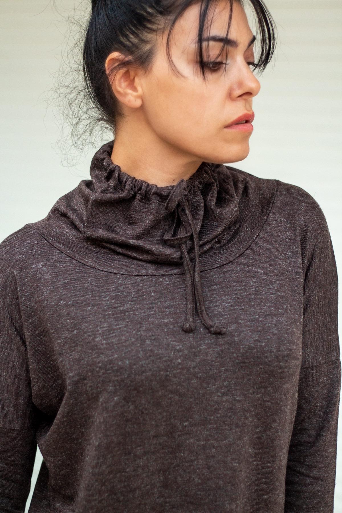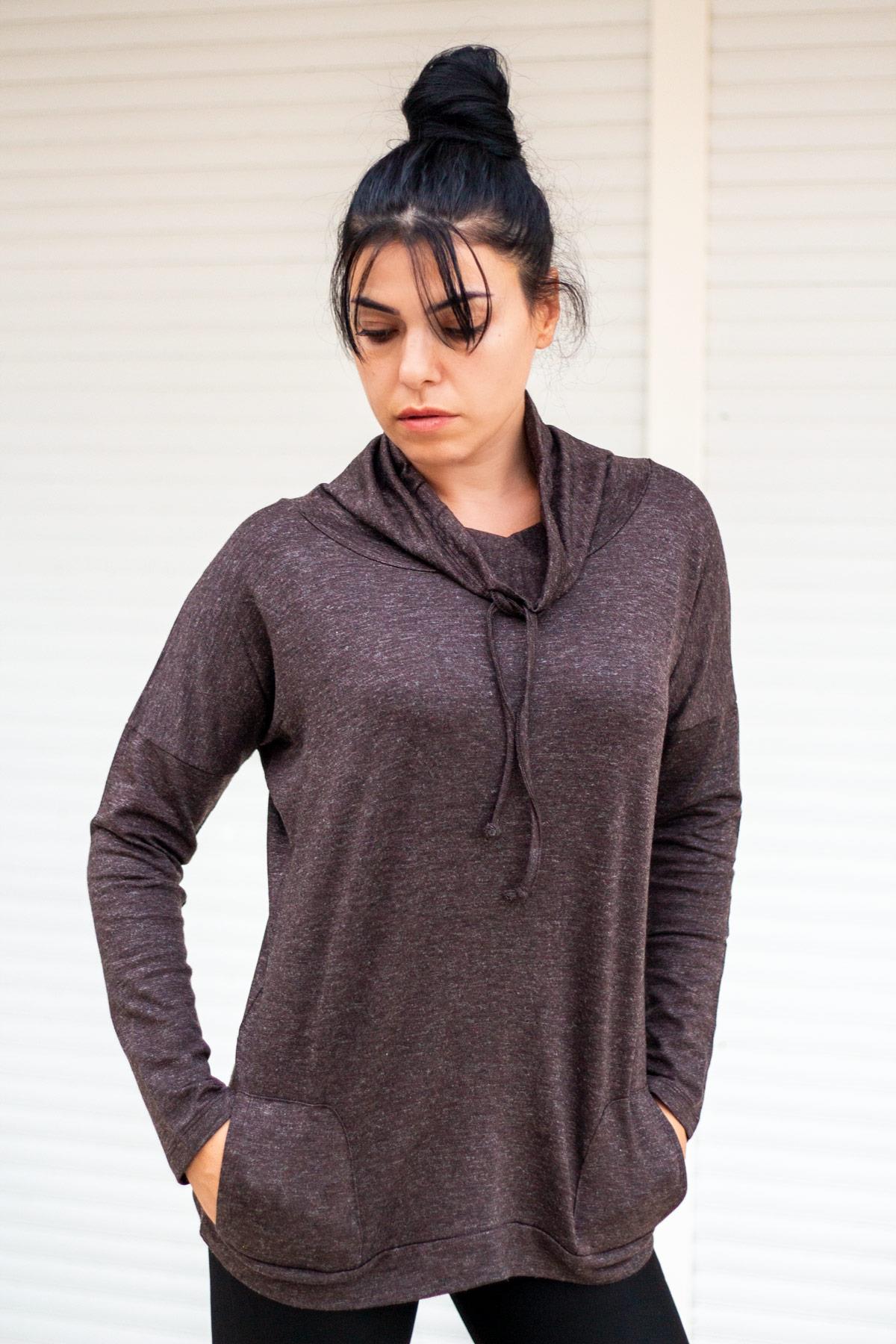 EtiketlerKadın Kahve Boğazlı Cepli Yumuşak Dokulu Sweatshirt 21KSWTBZOA