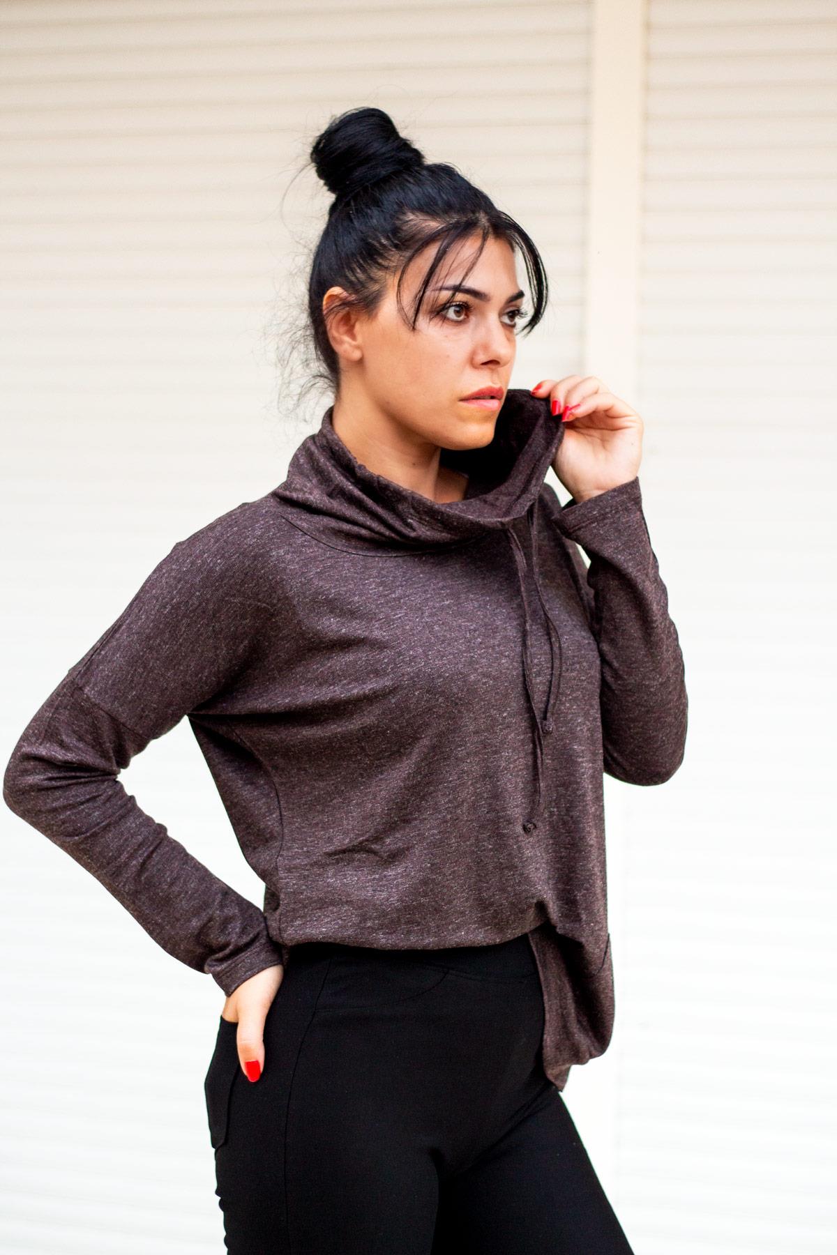 Kadın Kahve Boğazlı Cepli Yumuşak Dokulu Sweatshirt 21KSWTBZOA