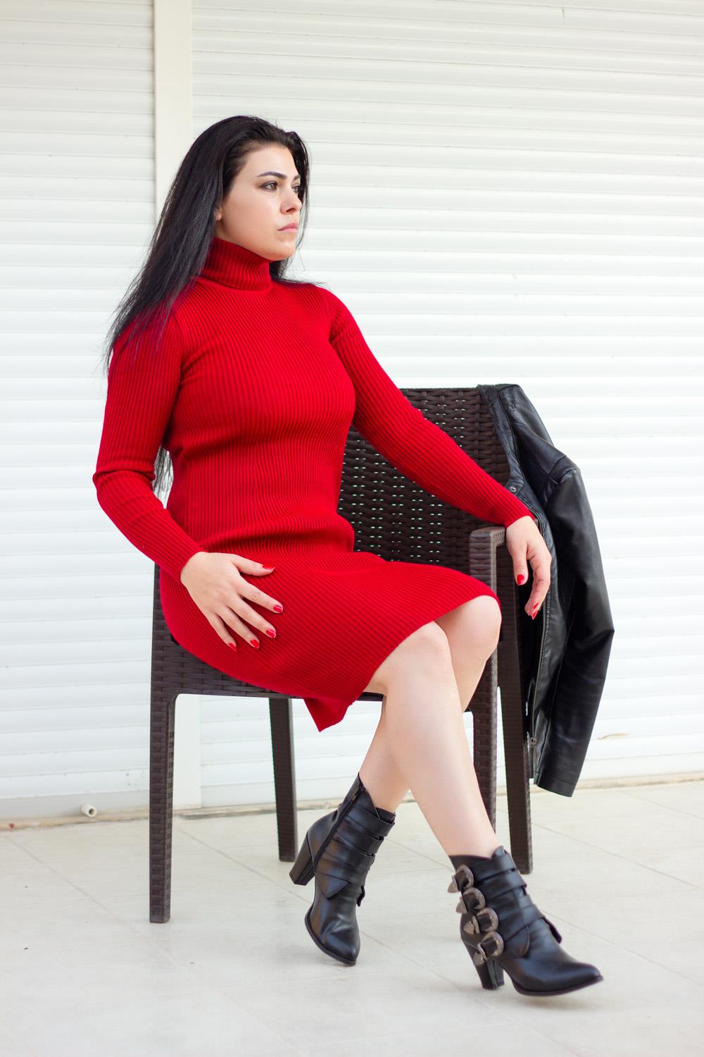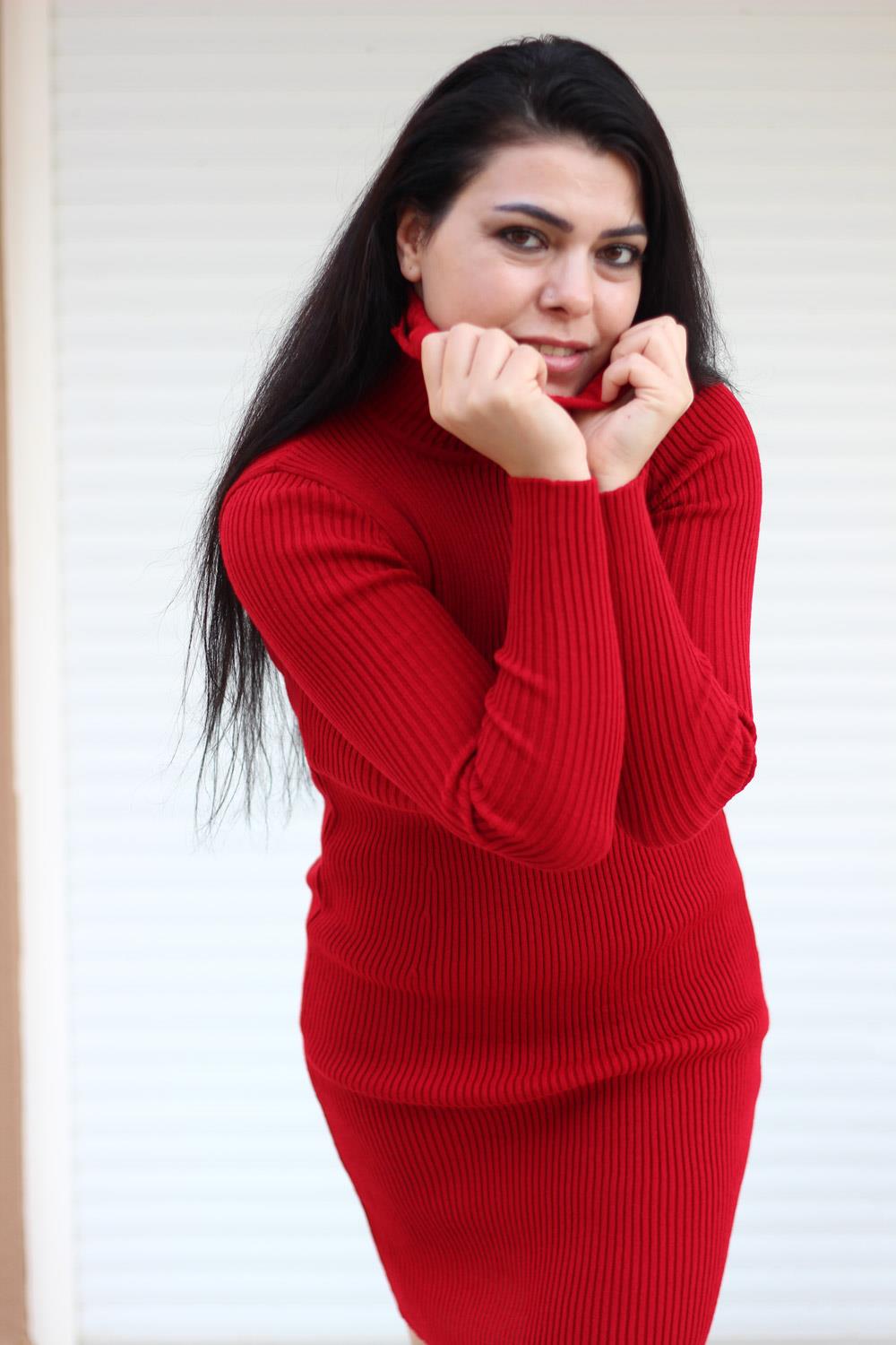 | Etiketler | Kadın Kırmızı Kollu Boğazlı Fitilli Triko Diz Üstü Elbise 20KELBBELB |