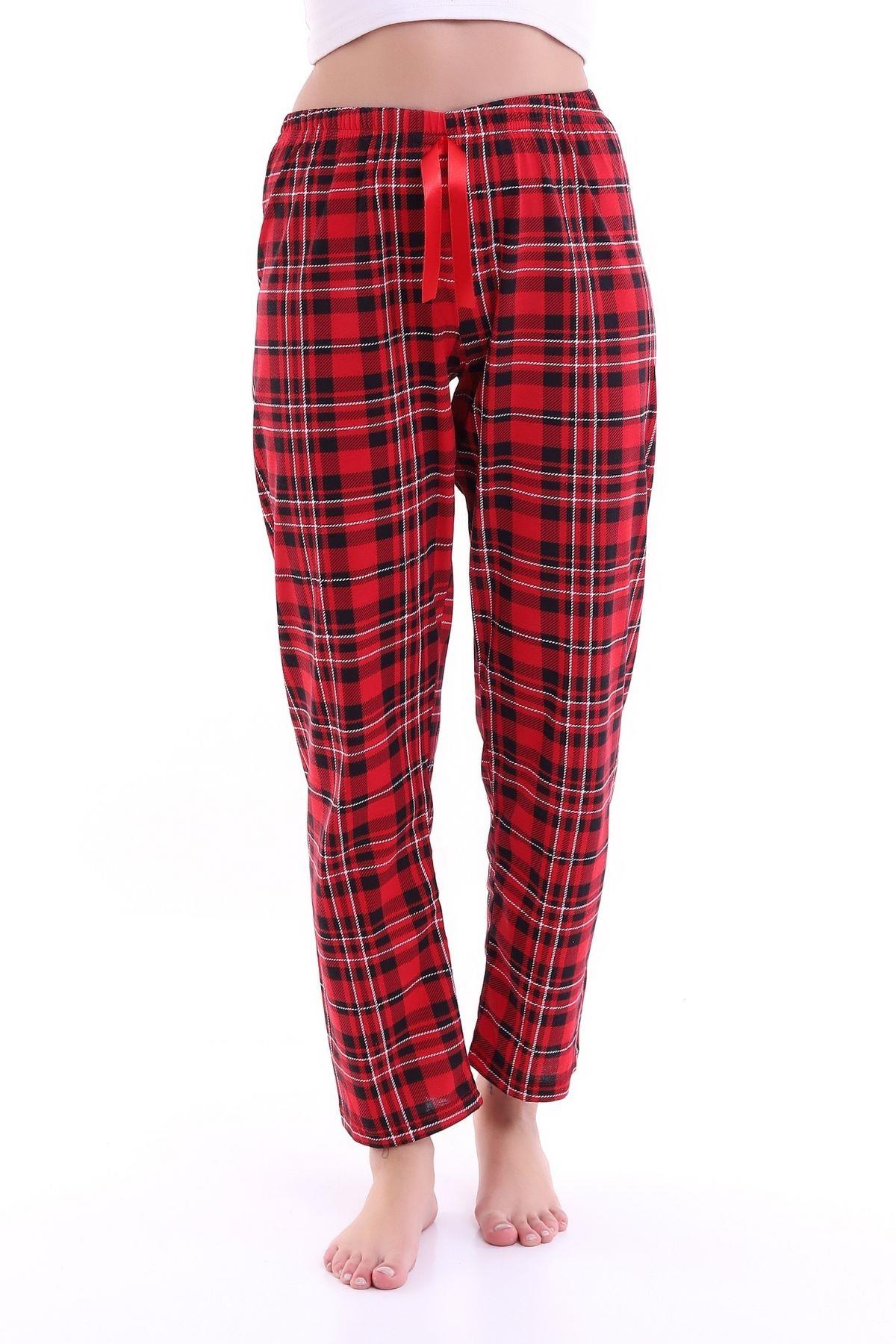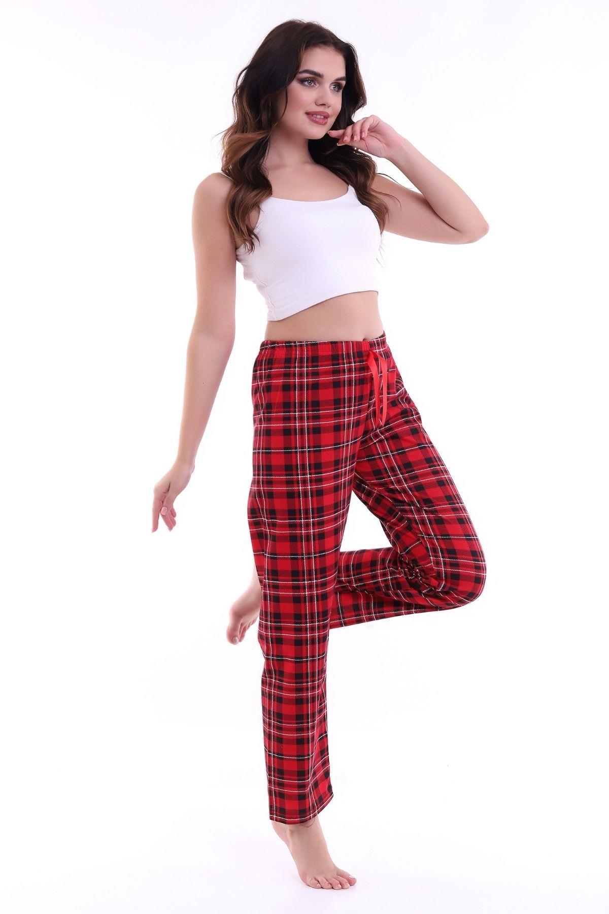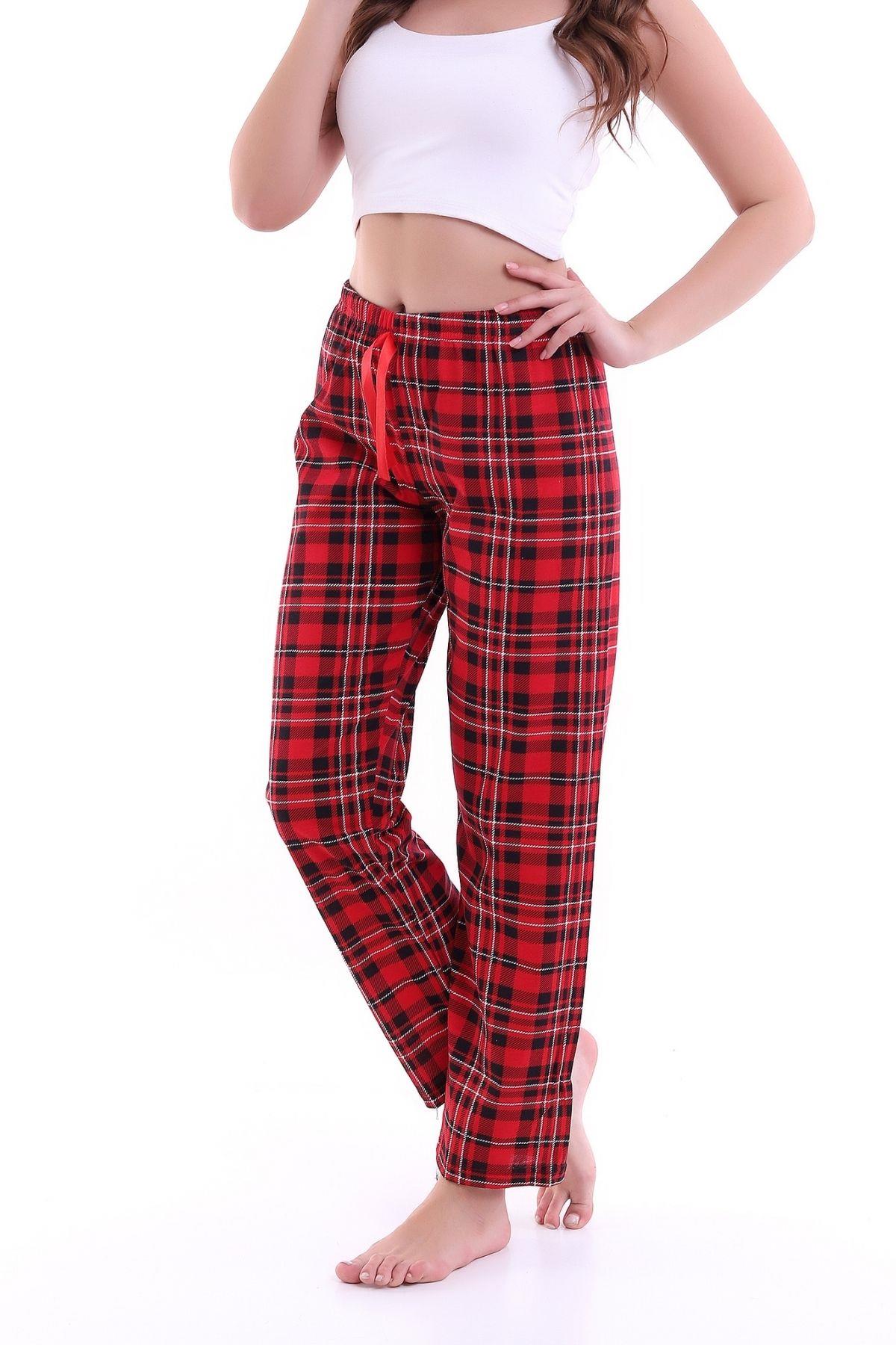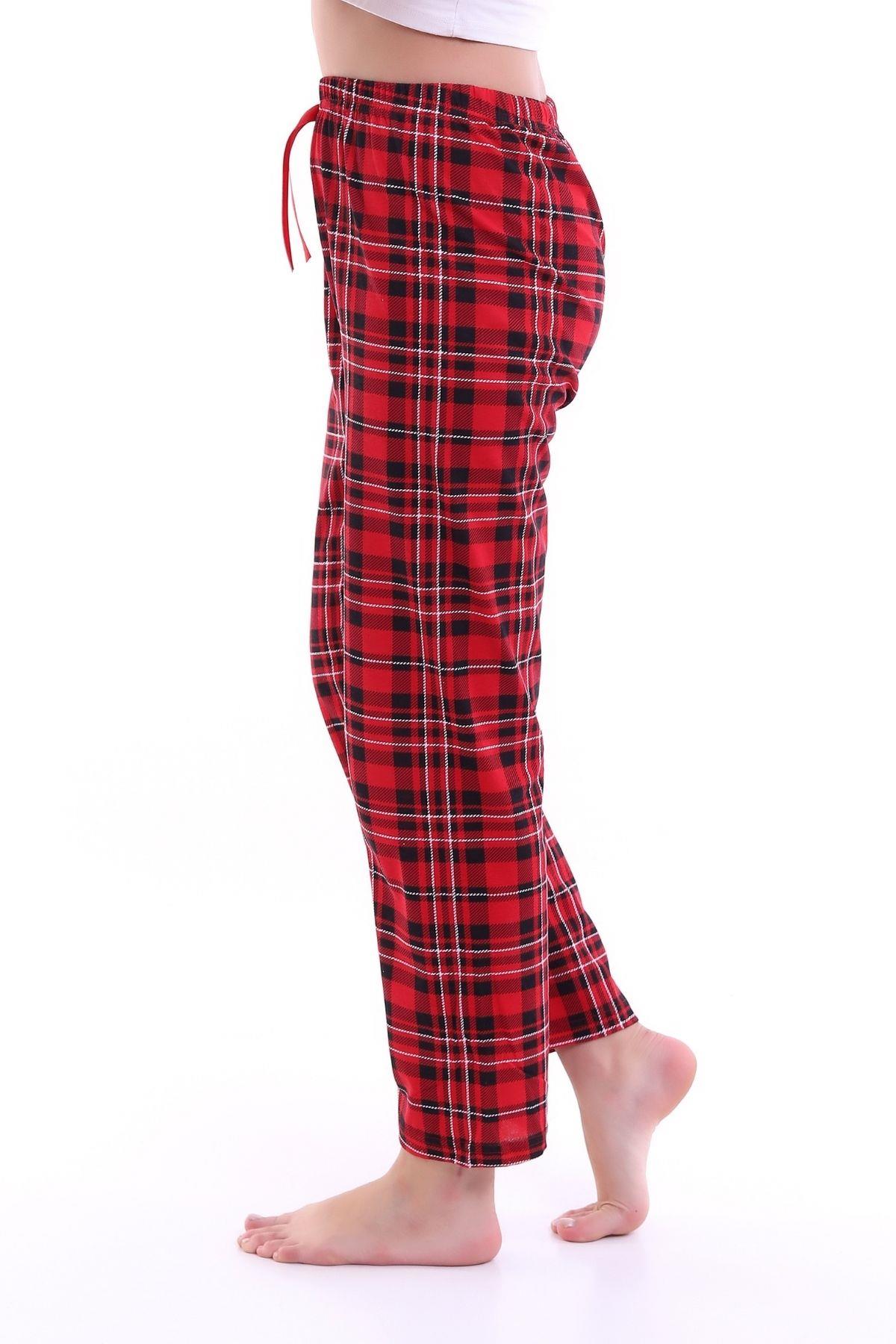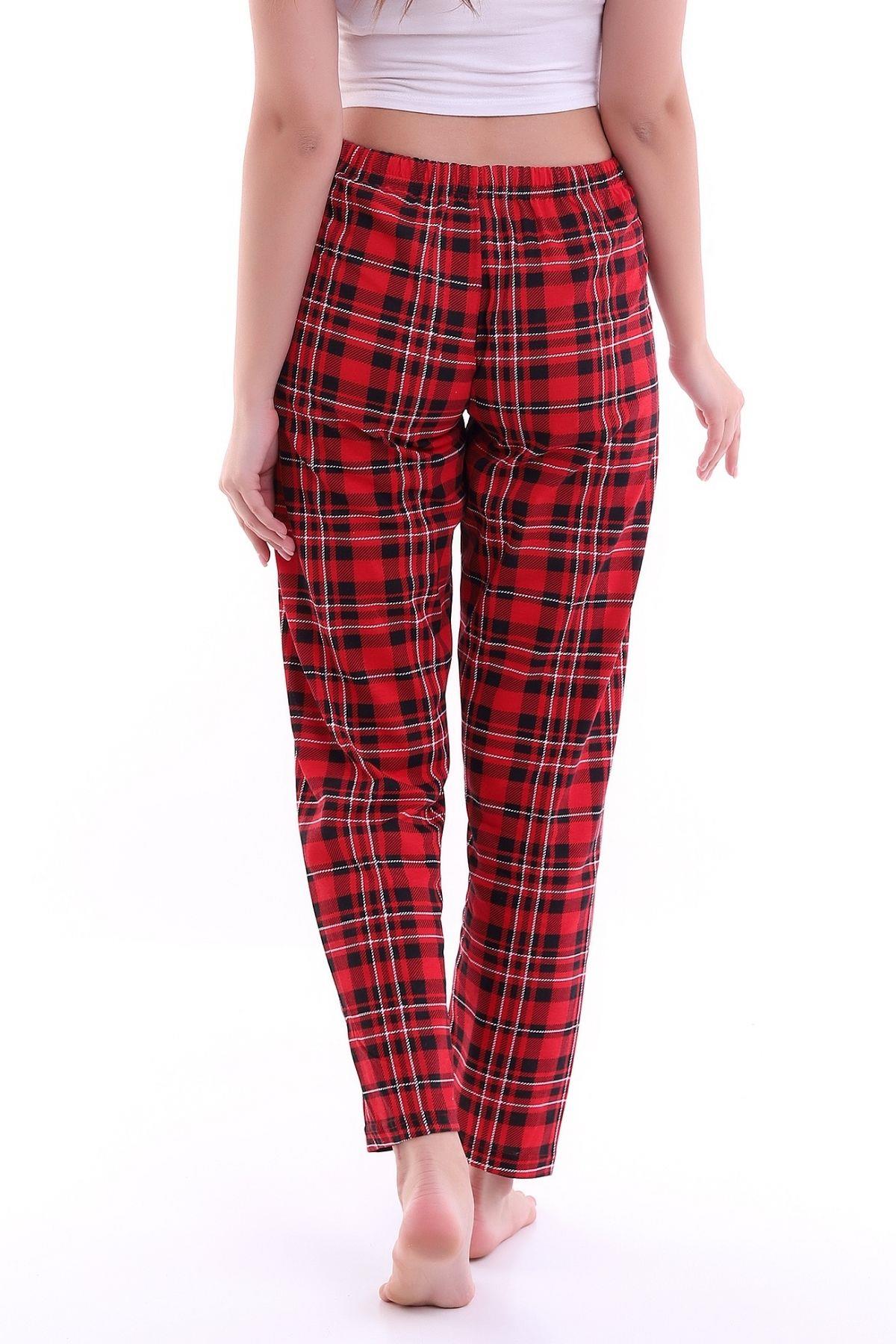 Kadın Kırmızı Kurdele Süslü Ekose Desen Pijama Altı 22KPJAEKOS