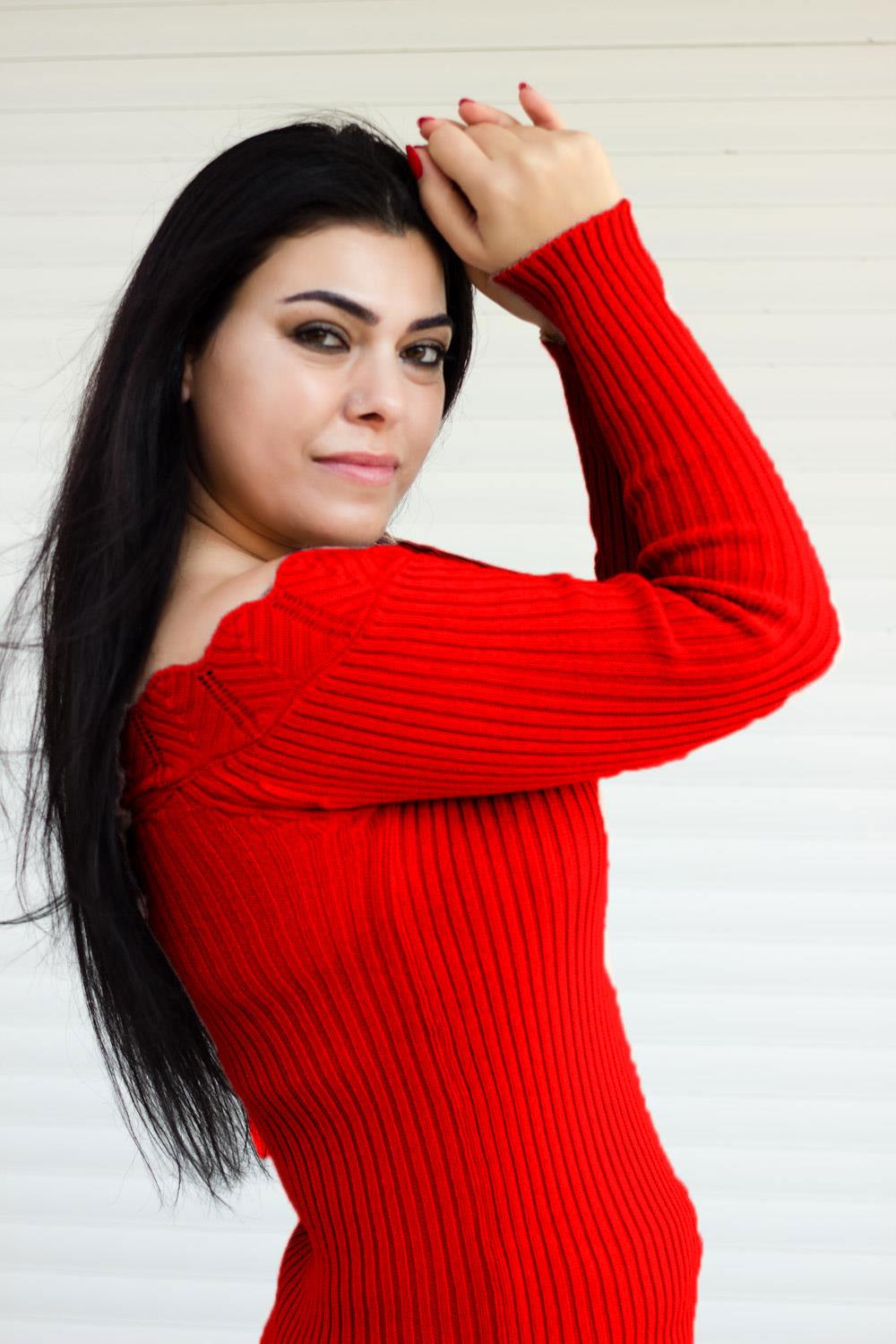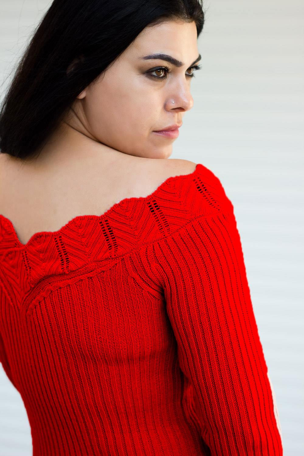 EtiketlerKadın Kırmızı Ön Arka V Yaka Fitilli Tiko Kazak 20KKZKVALK