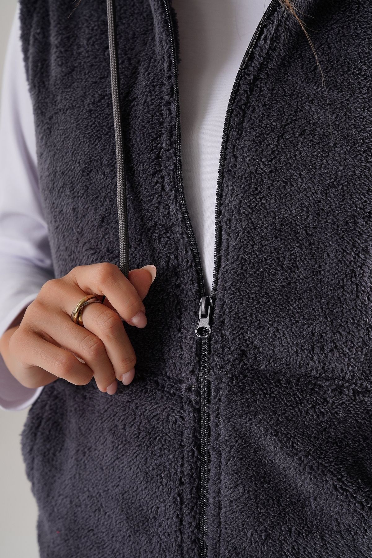 | Etiketler | Kadın Koyu Gri Füme Peluş Yumoş Fermuarlı Kapüşonlu Welsfot Yelek 22KYLKPELO |
