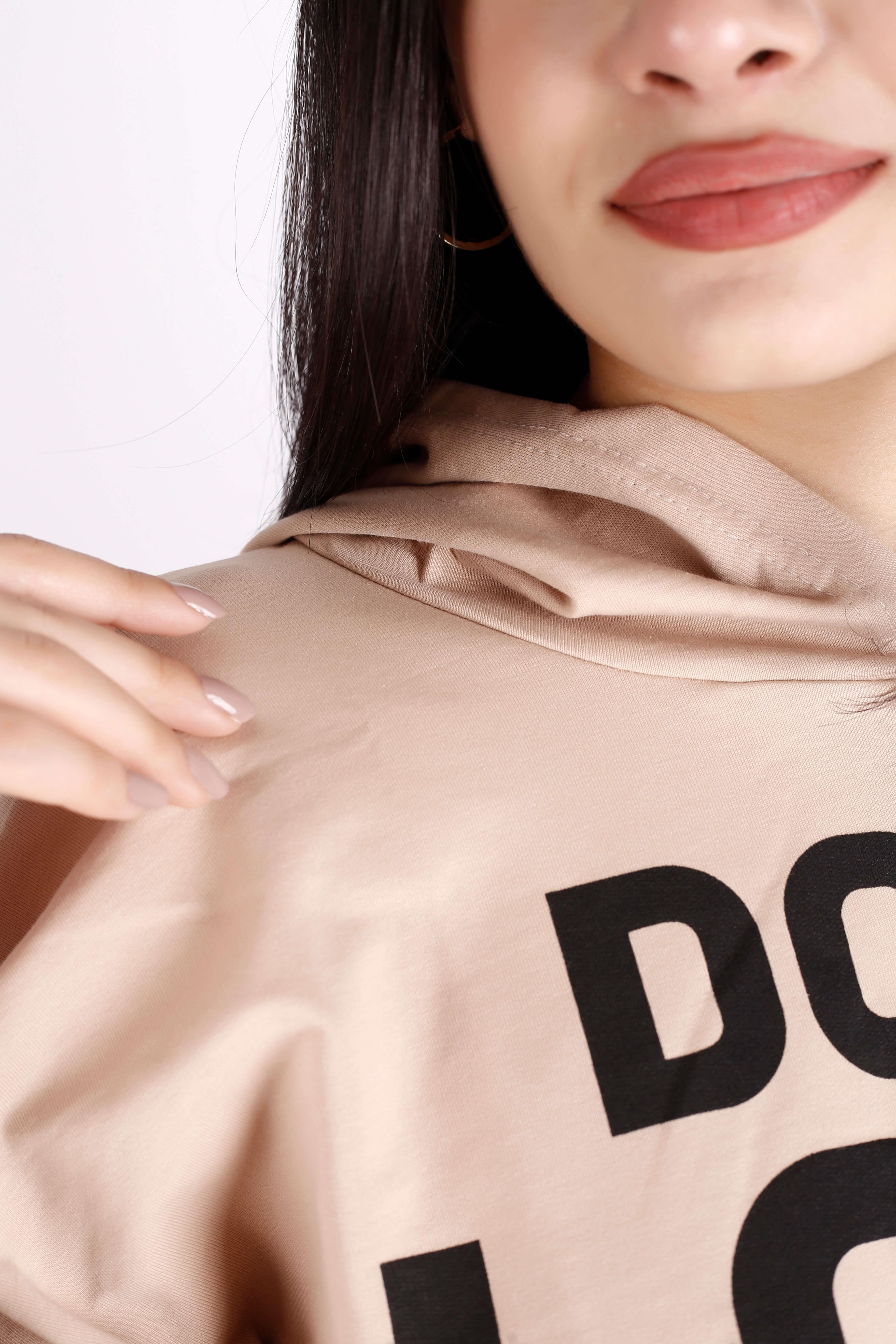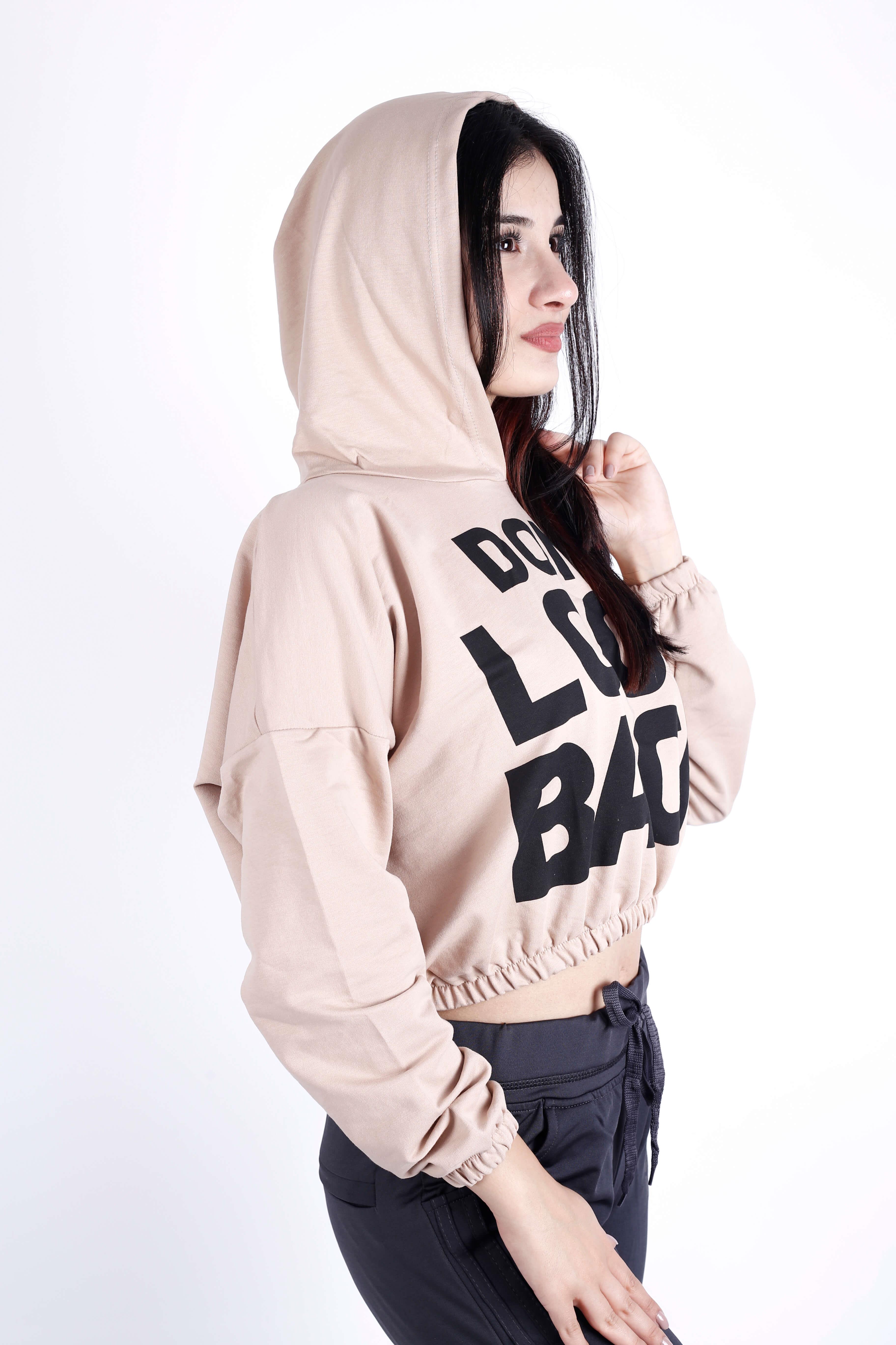 | Etiketler | Kadın Krem Dont Look Back Ön Arka Yazı Baskılı Kapüşonlu Crop Sweatshirt |