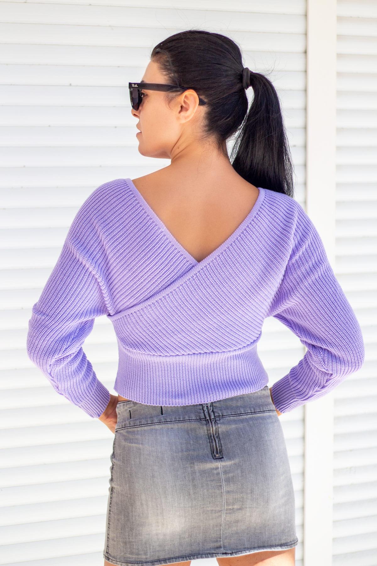 Kadın Lila Kruvaze V Yaka Fitilli Tiko Kazak 21KKZKKRVZ
