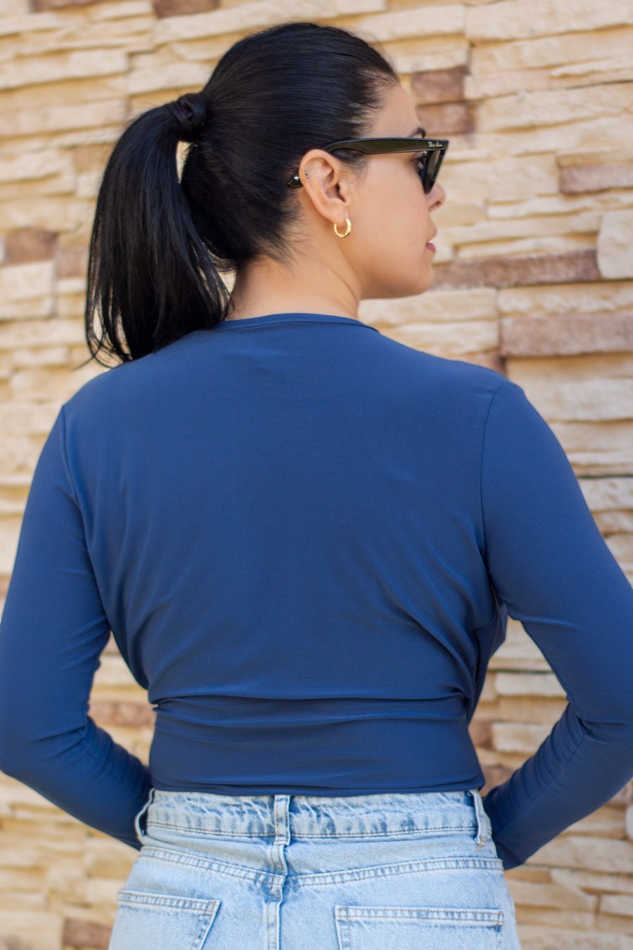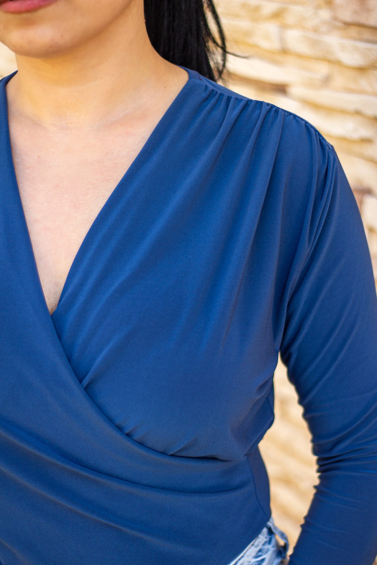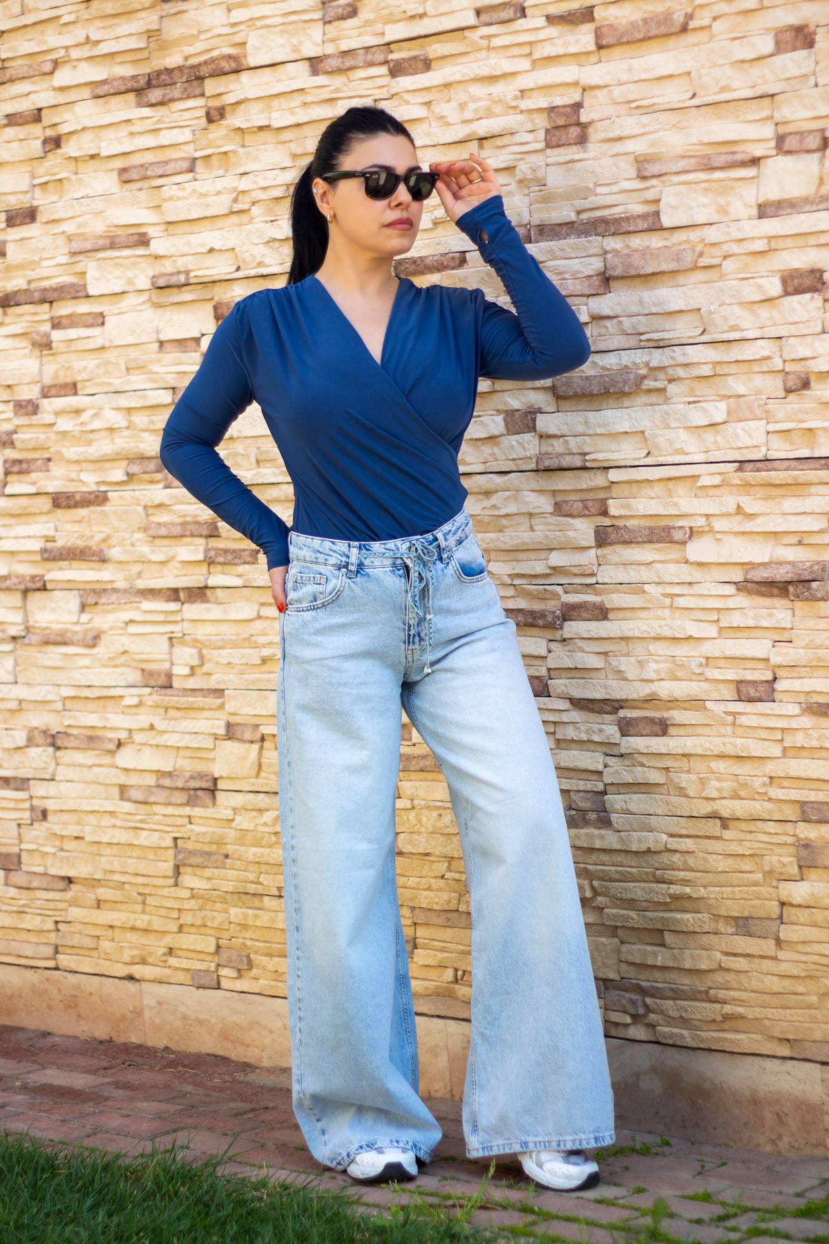 Kadın Mavi Kruvaze Kapamalı Sandy Kumaş Bluz 25KBLZ4058