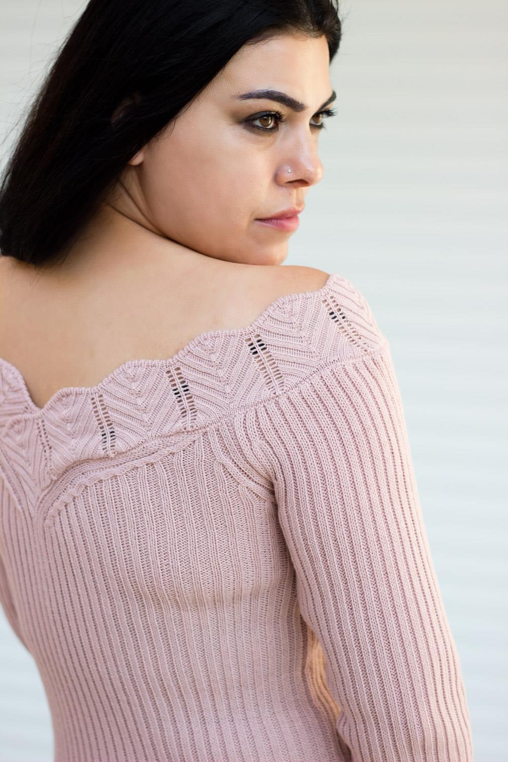 EtiketlerKadın Pembe Pudra Ön Arka V Yaka Fitilli Triko Kazak 20KKZKVALK