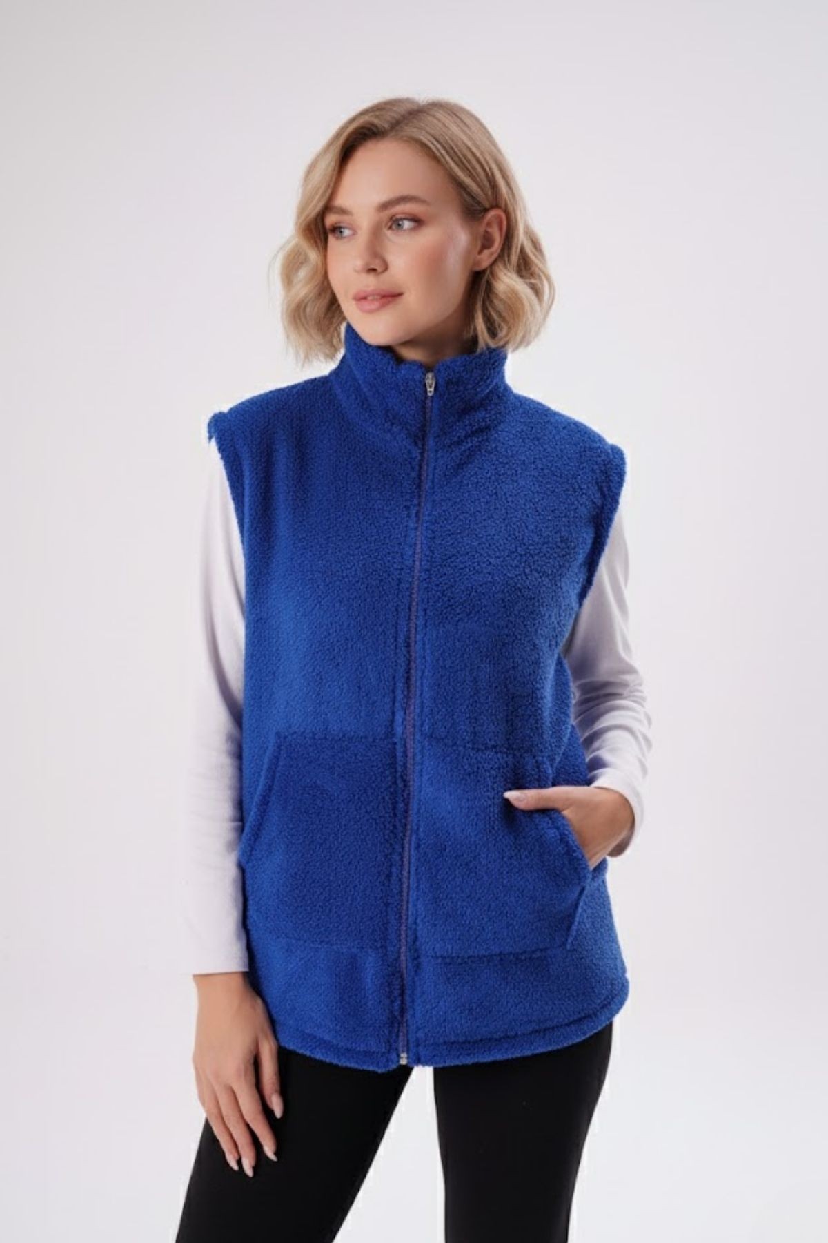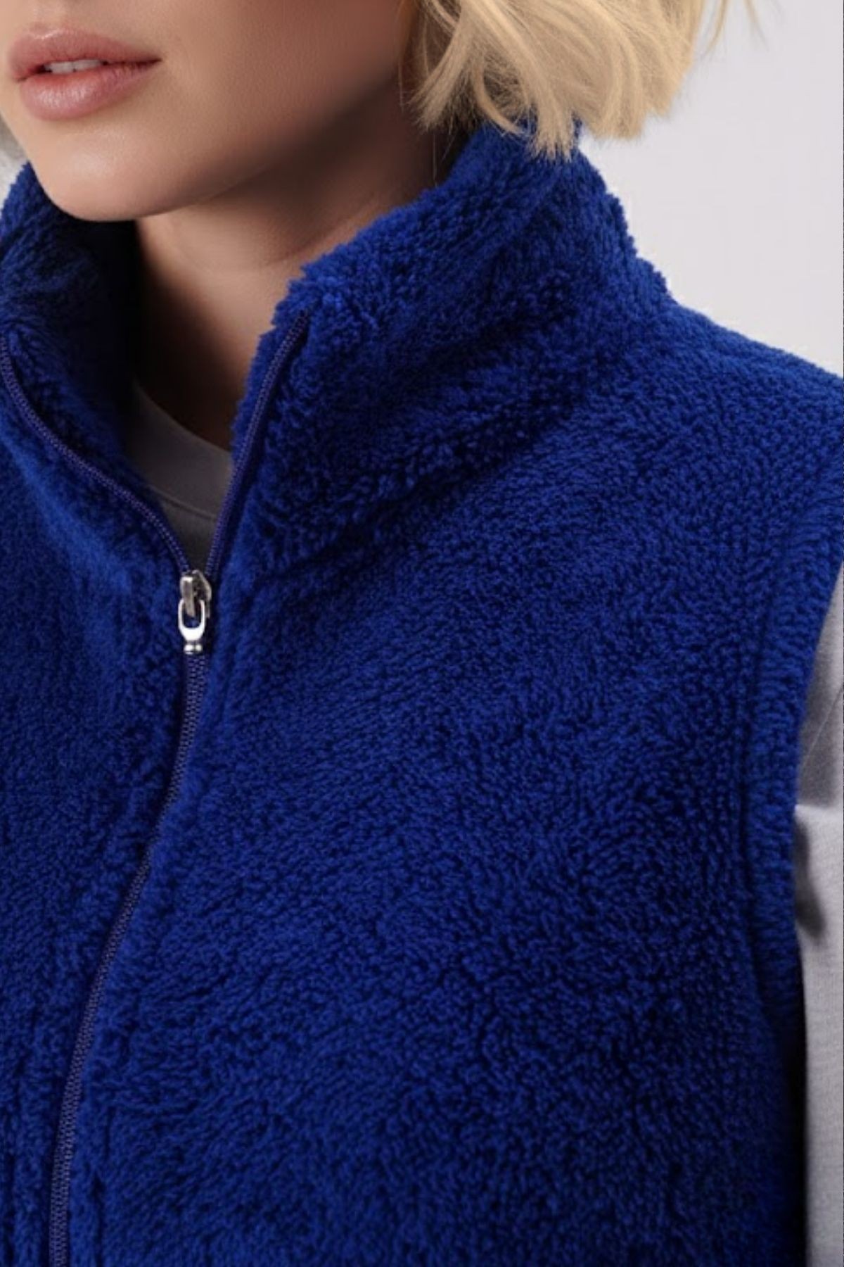 | Etiketler | Kadın Saks Koyu Mavi Dik Yaka Kalın Peluş Fermuarlı Yelek 24KYLKK215 |