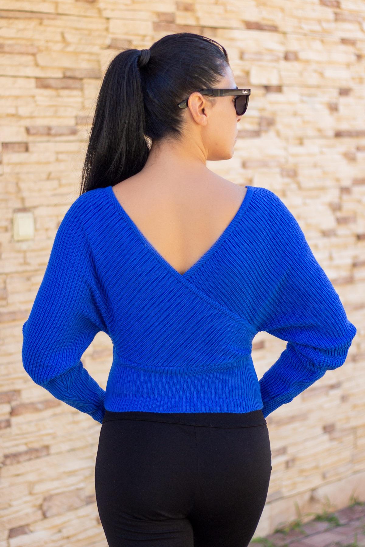 Kadın Saks Kruvaze V Yaka Fitilli Tiko Kazak 21KKZKKRVZ