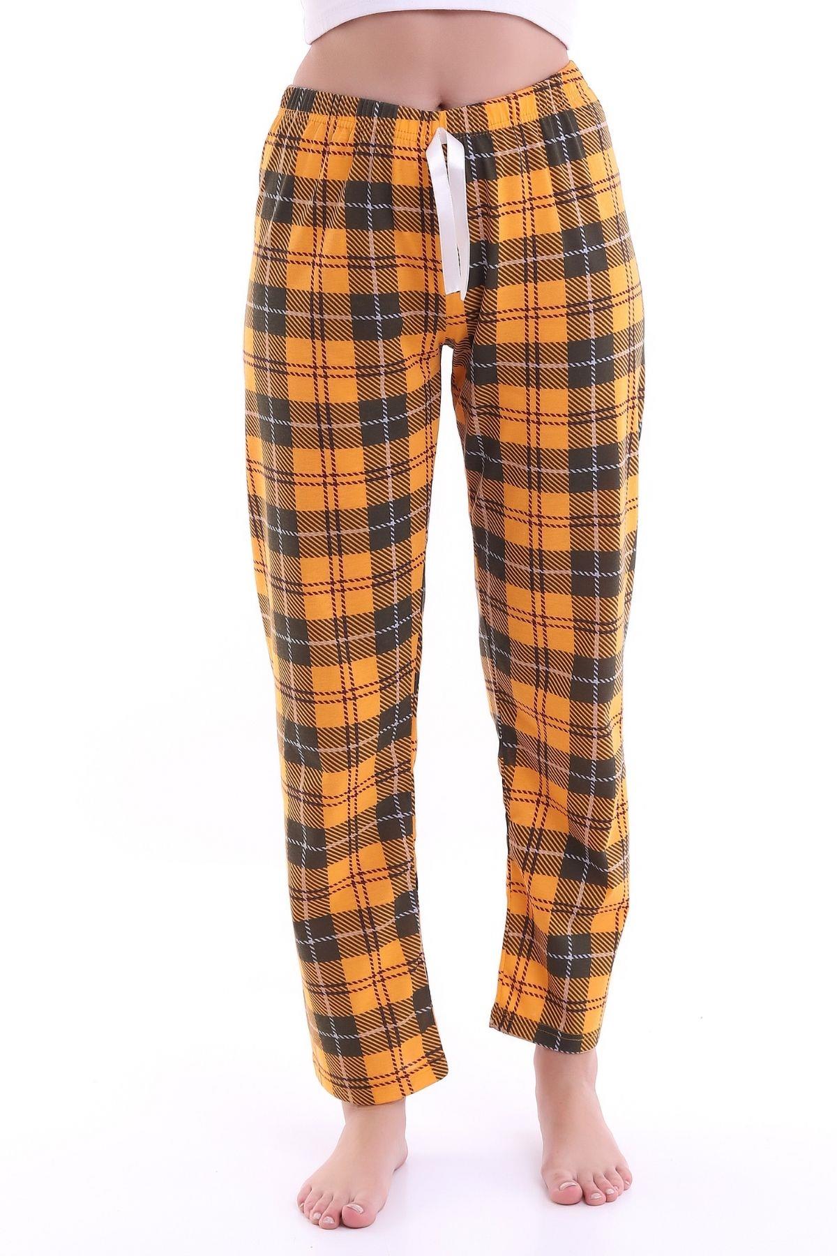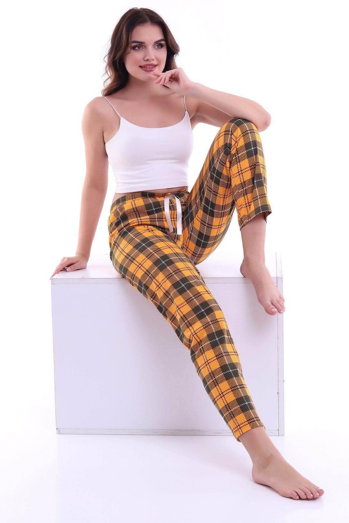 Kadın Sarı Kurdele Süslü Ekose Desen Pijama Altı 22KPJAEKOS