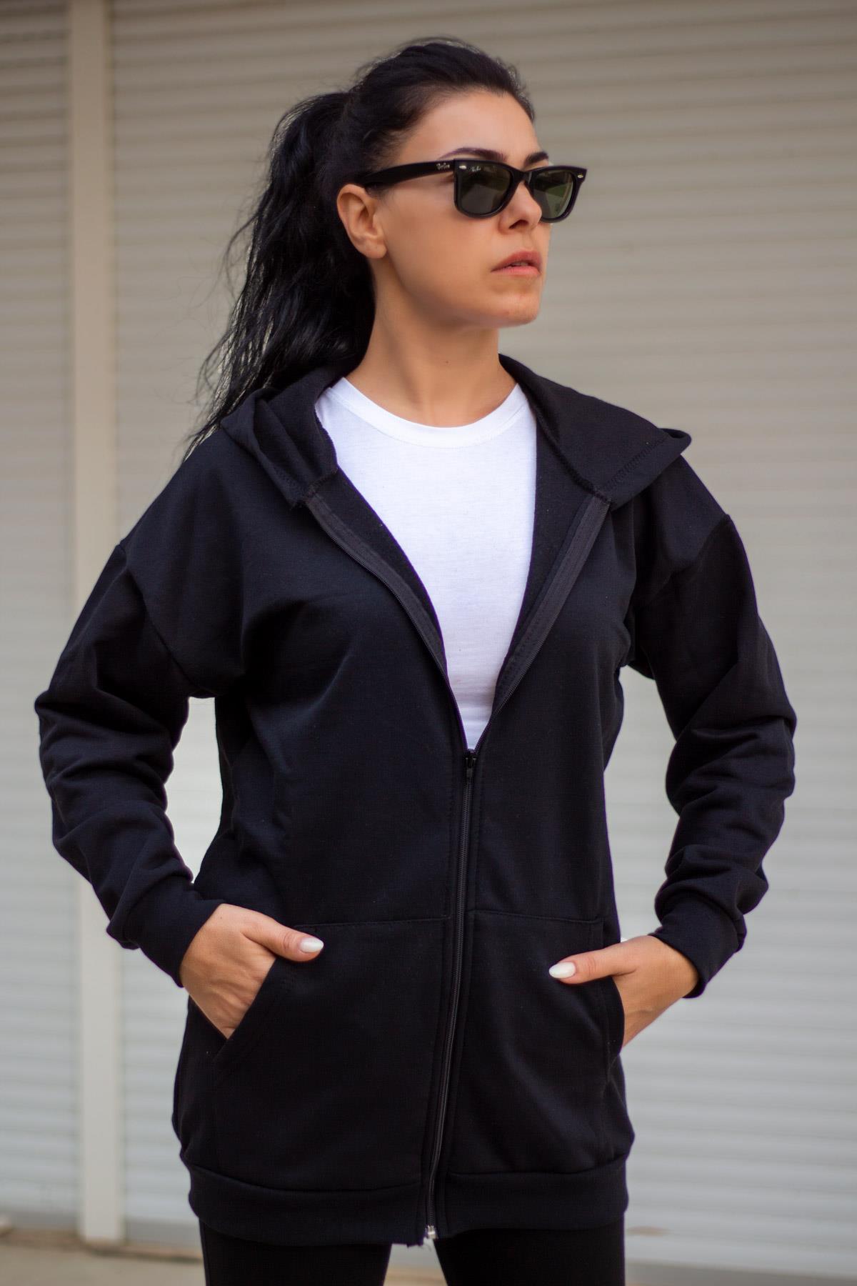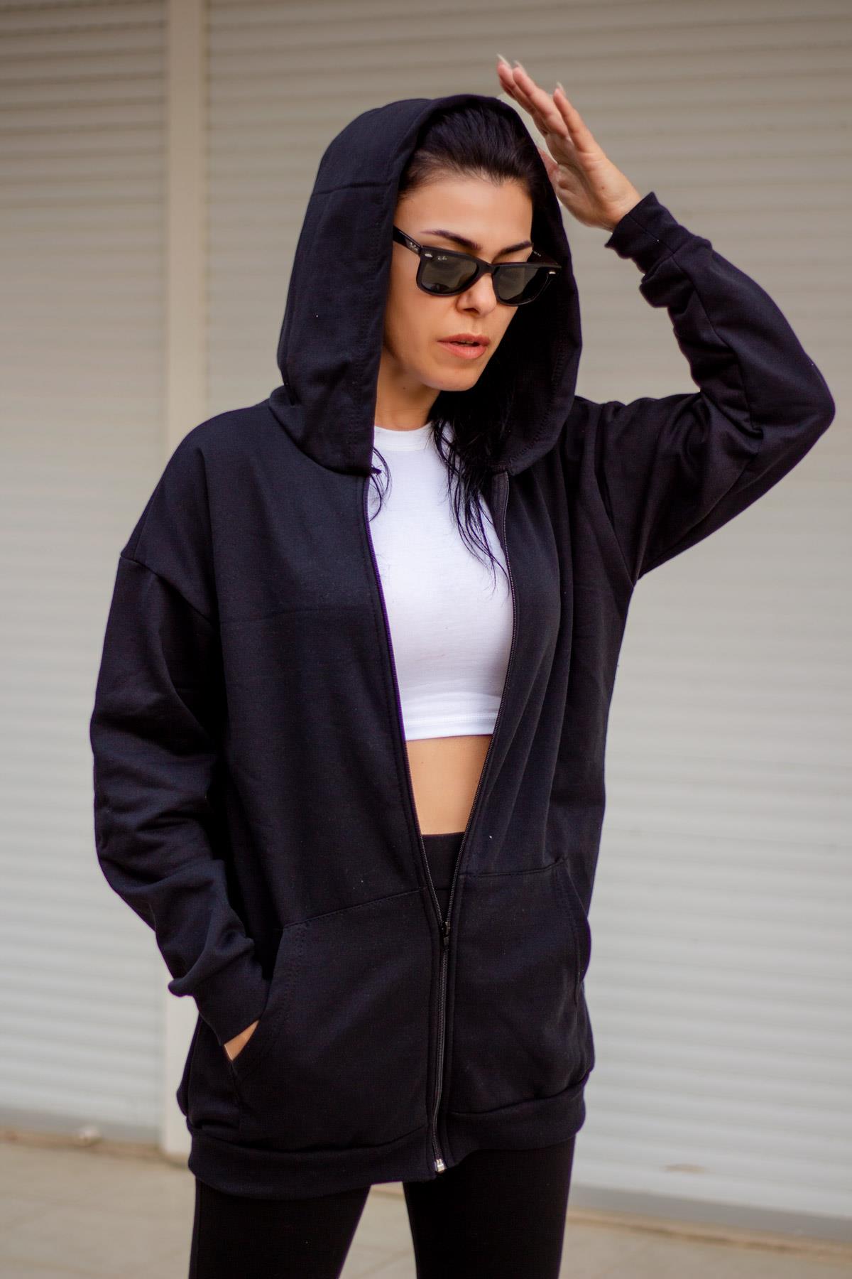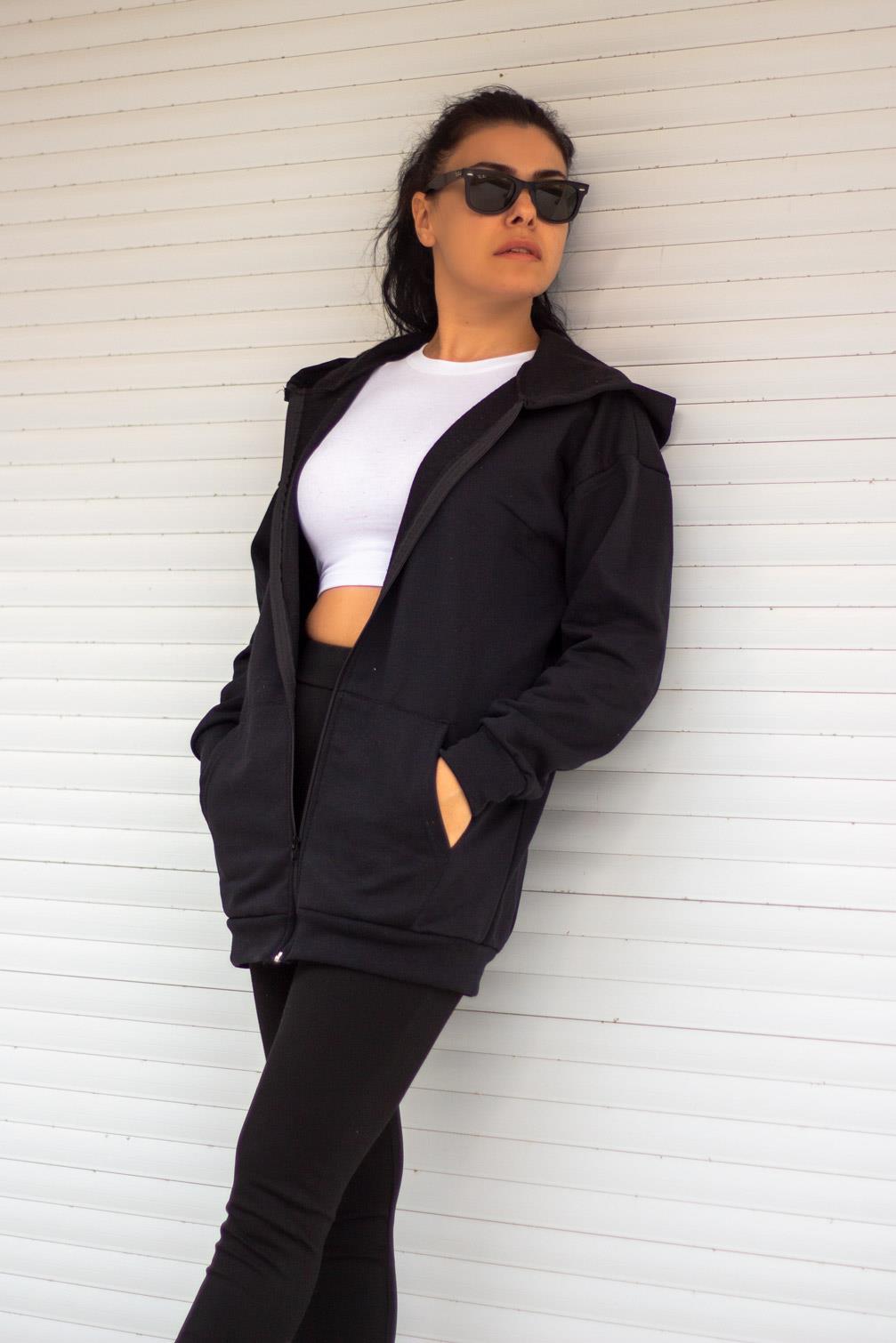 | Etiketler | Kadın Siyah Baskısız Basic Oversize Fermuarlı Kapüşonlu Uzun Kollu Kalın Ceket Sweatshirt 23KCKTFORM |