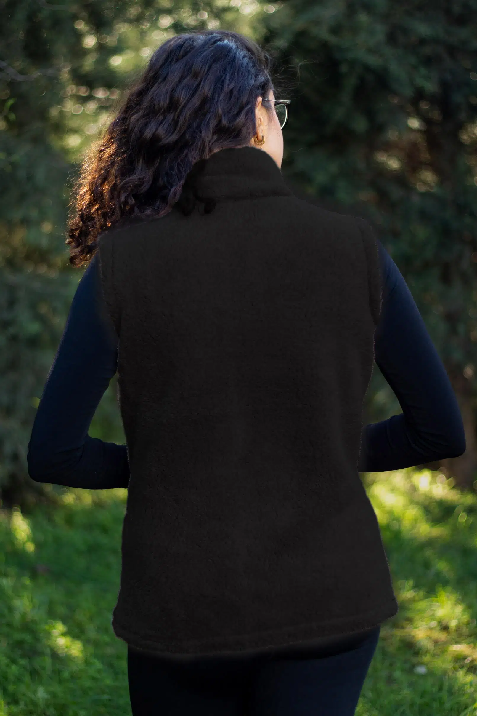 EtiketlerKadın Siyah Dik Yaka Kalın Peluş Fermuarlı Yelek 24KYLKK215