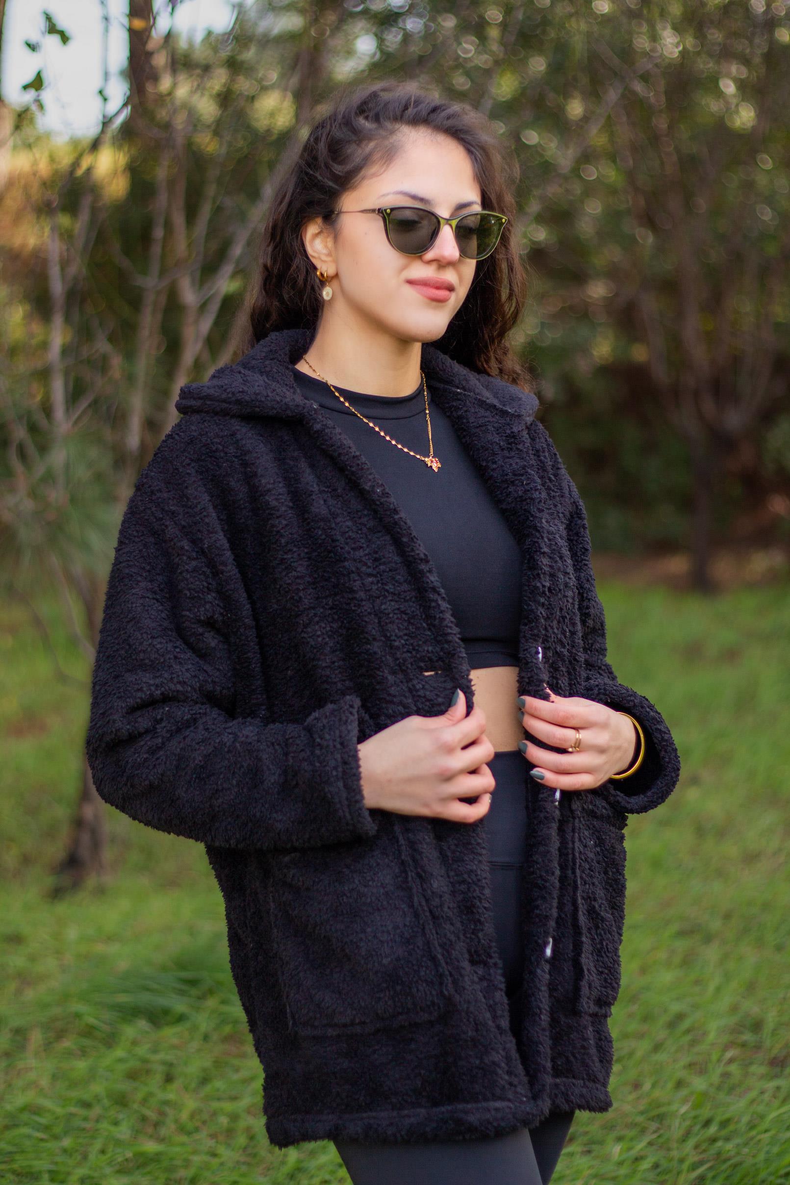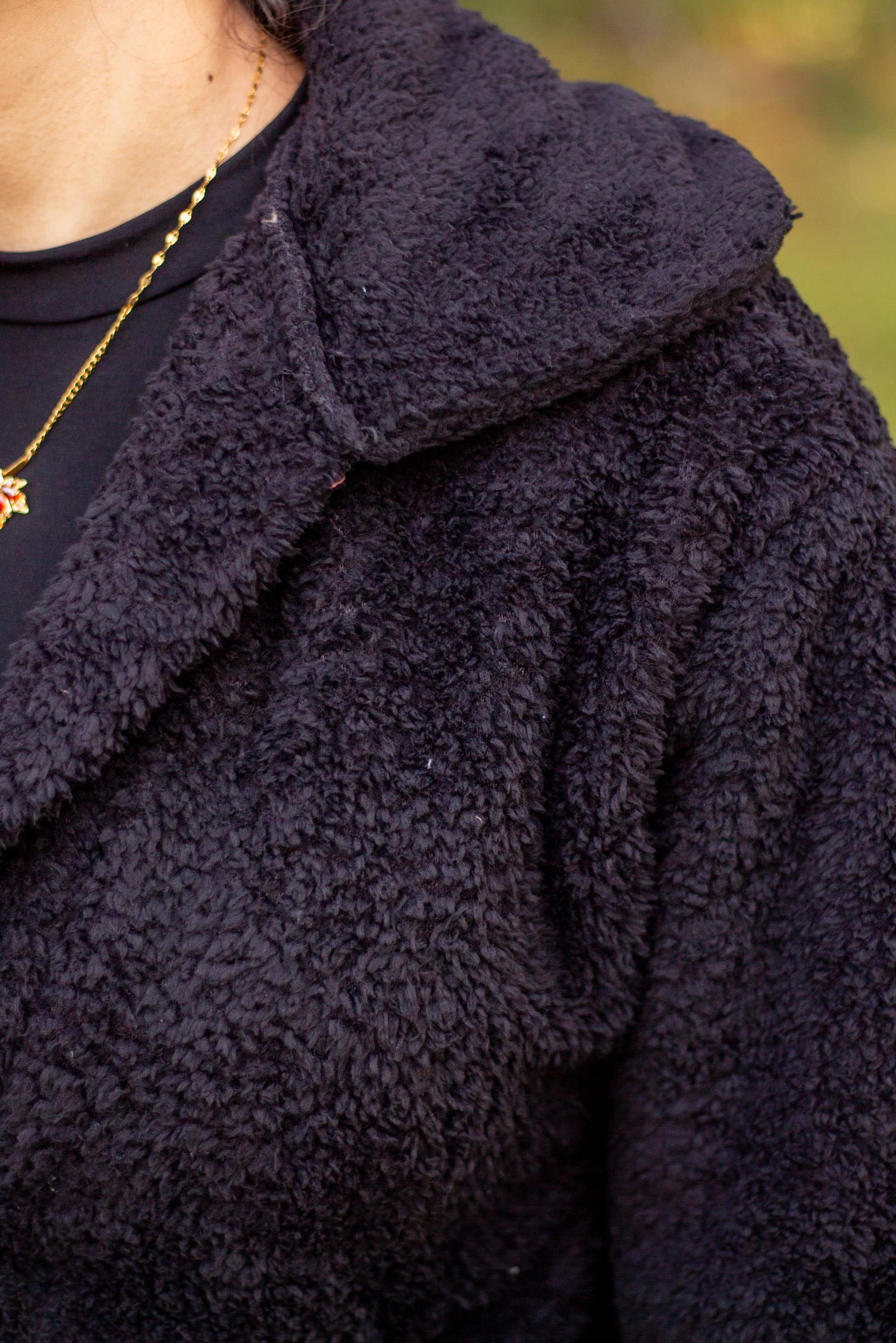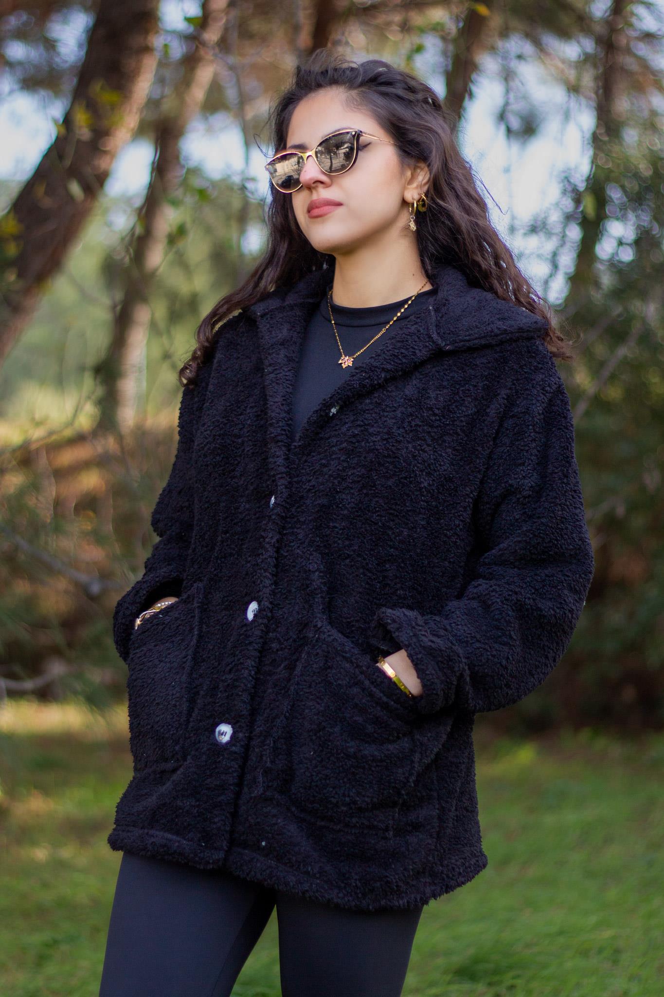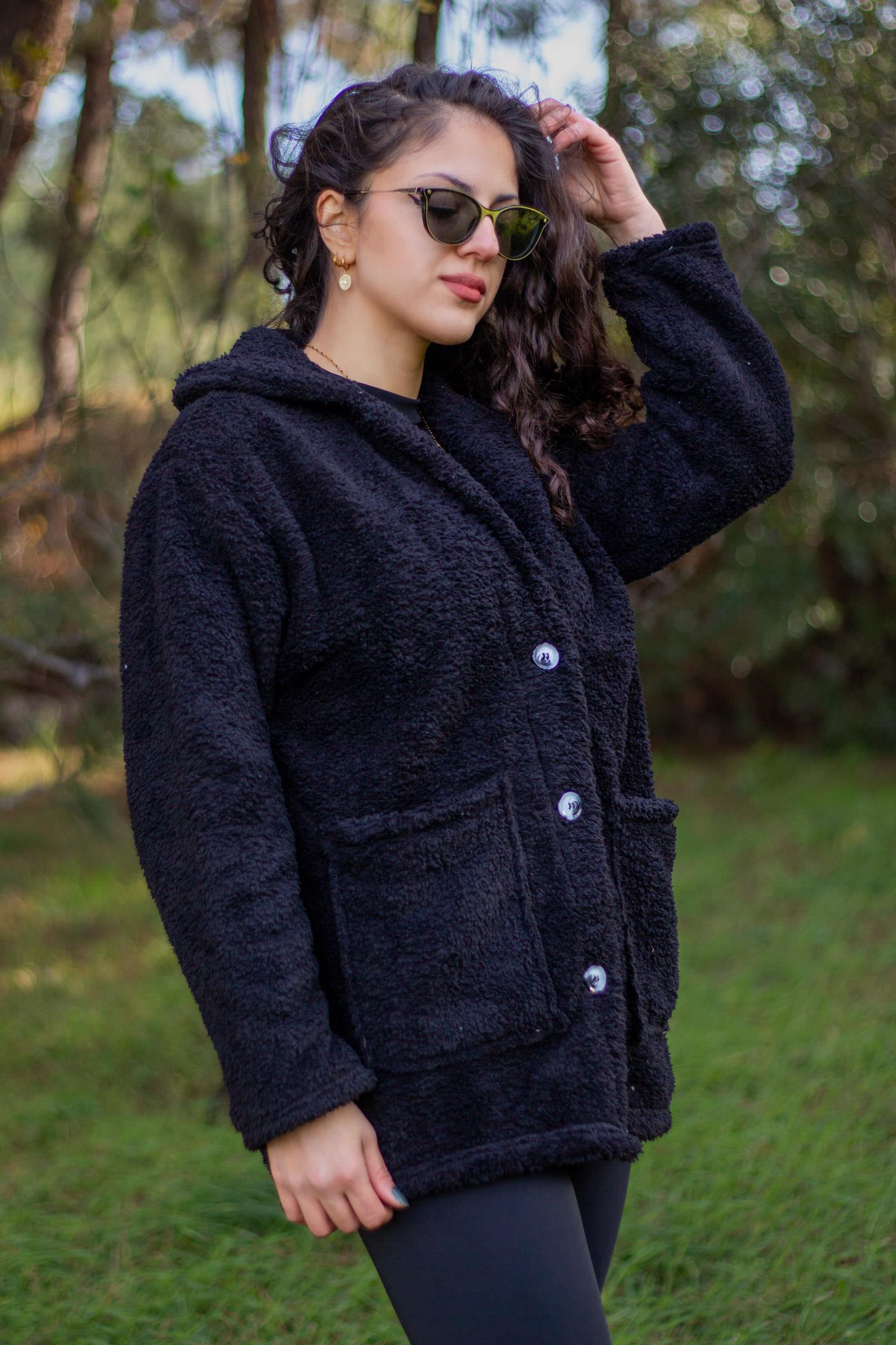 | Etiketler | Kadın Siyah Düğmeli Yüksek Yaka Uzun Bol Rahat Kesim Welsoft Peluş Ceket 24KCKTDUME |