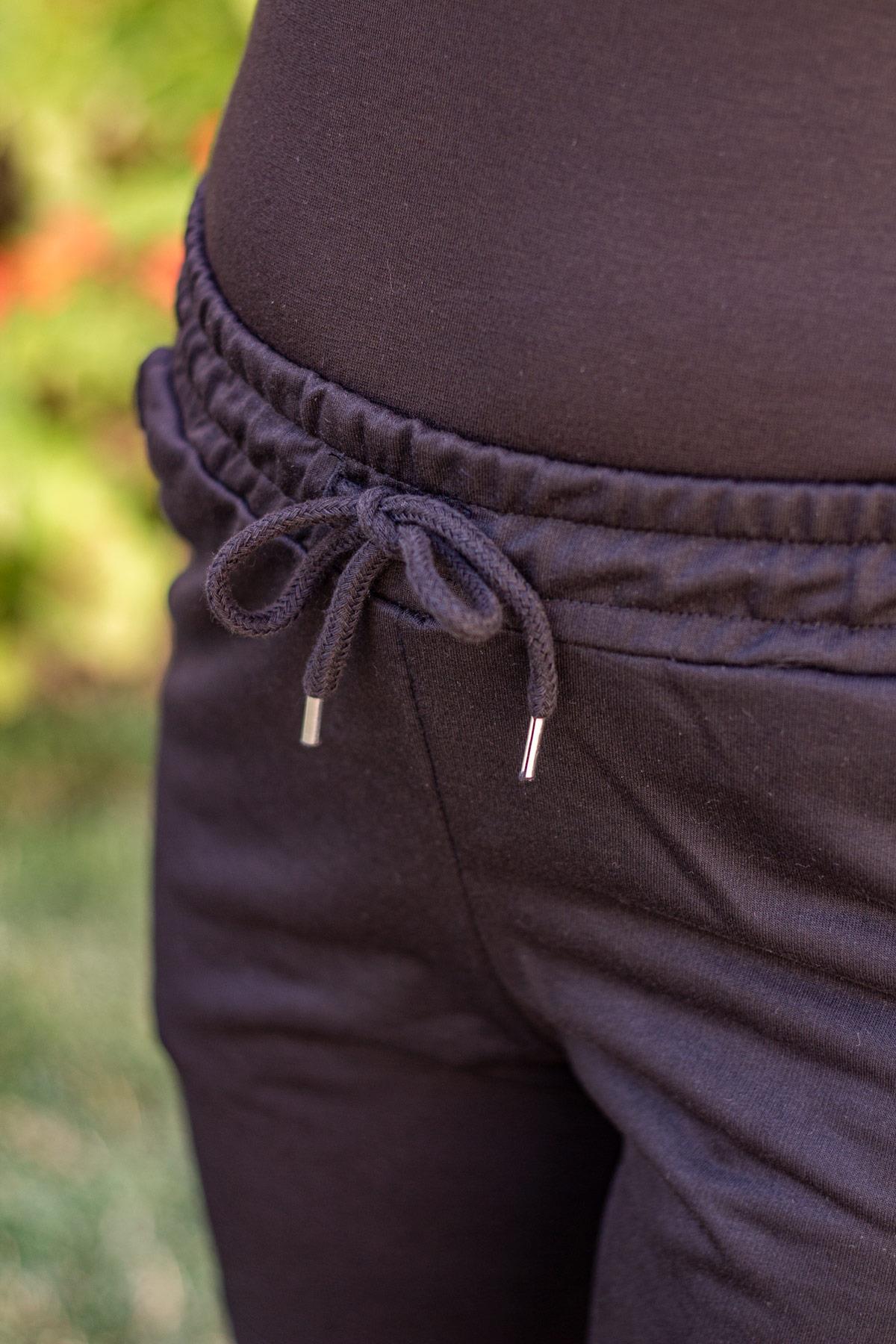 Kadın Siyah Kısa Penye Belden İpli Şort 21KSRTKPEN
