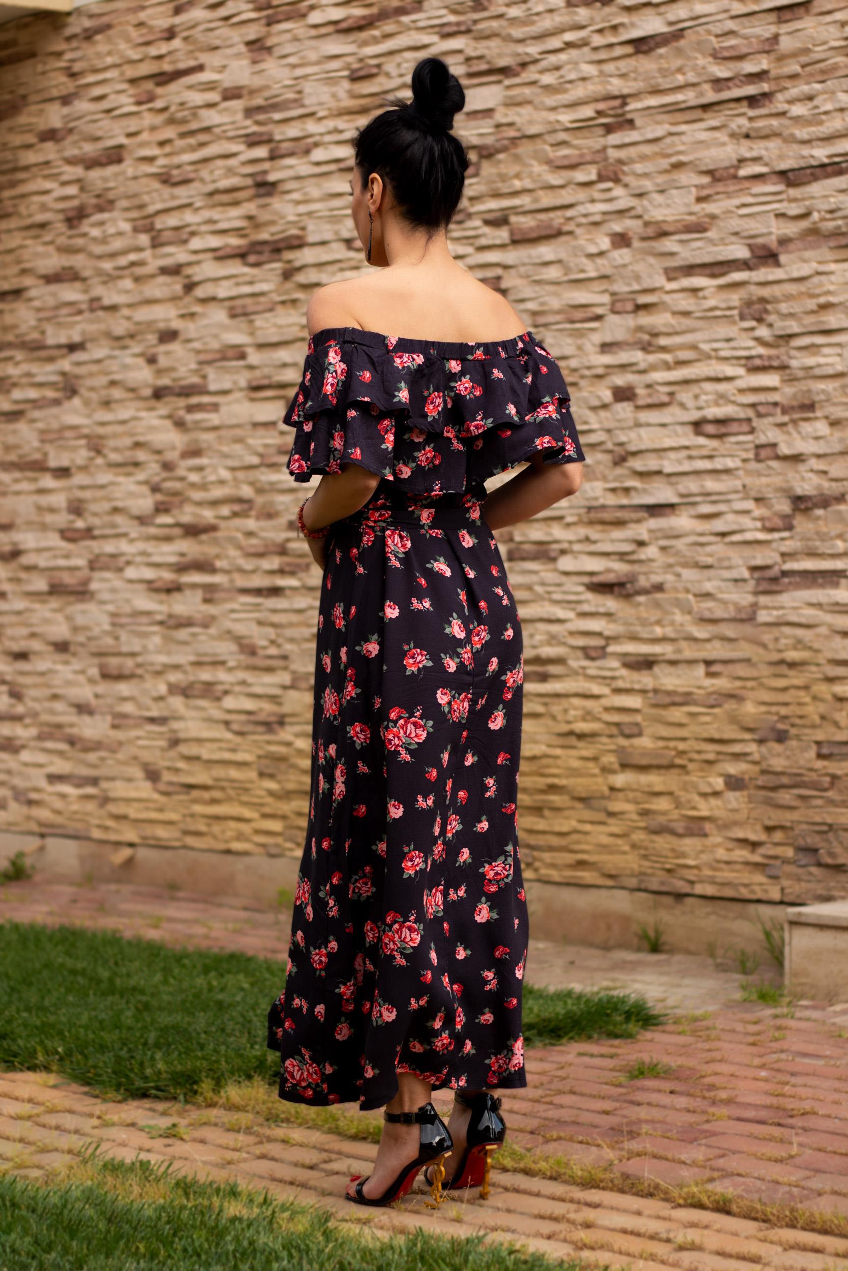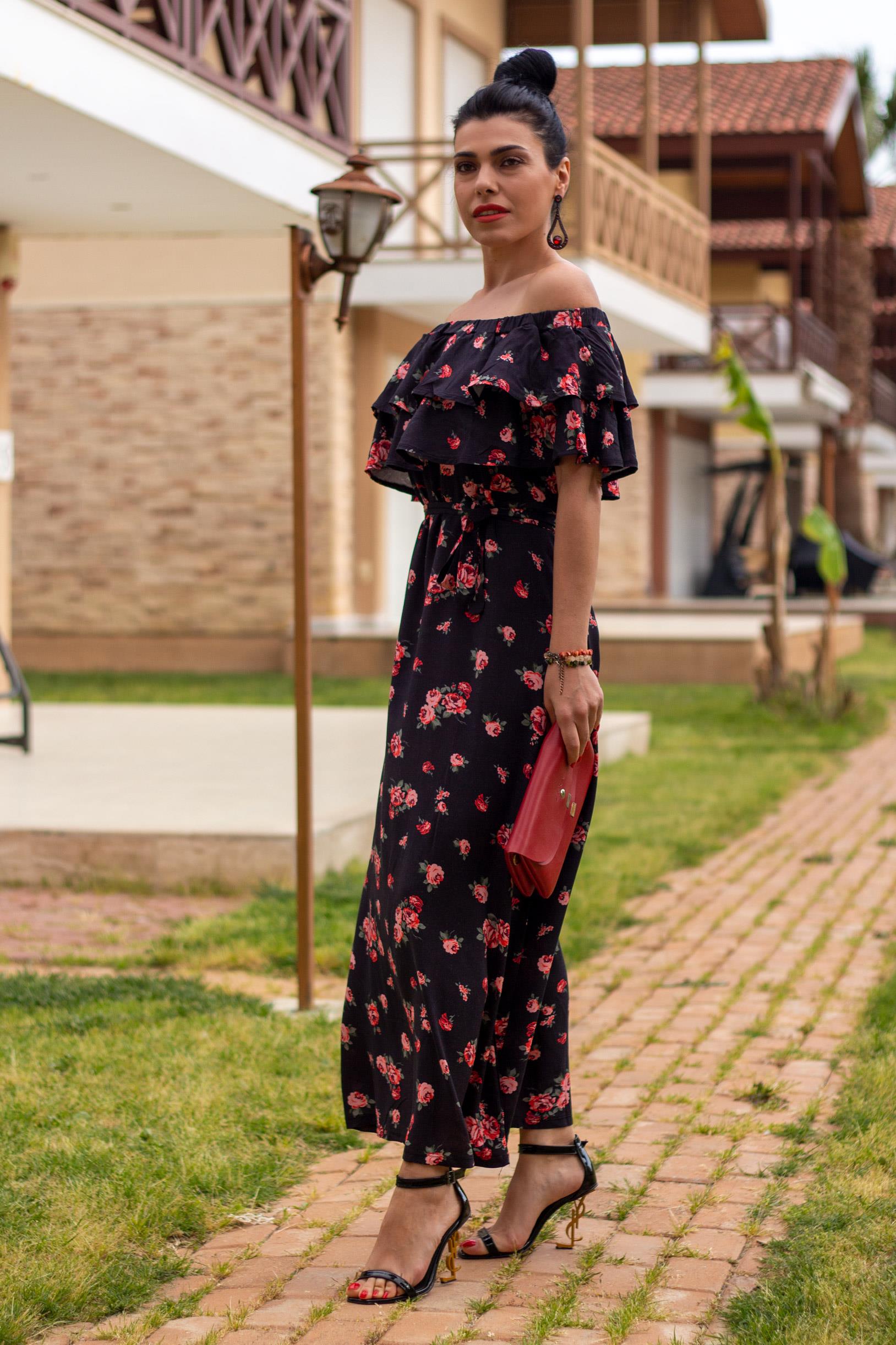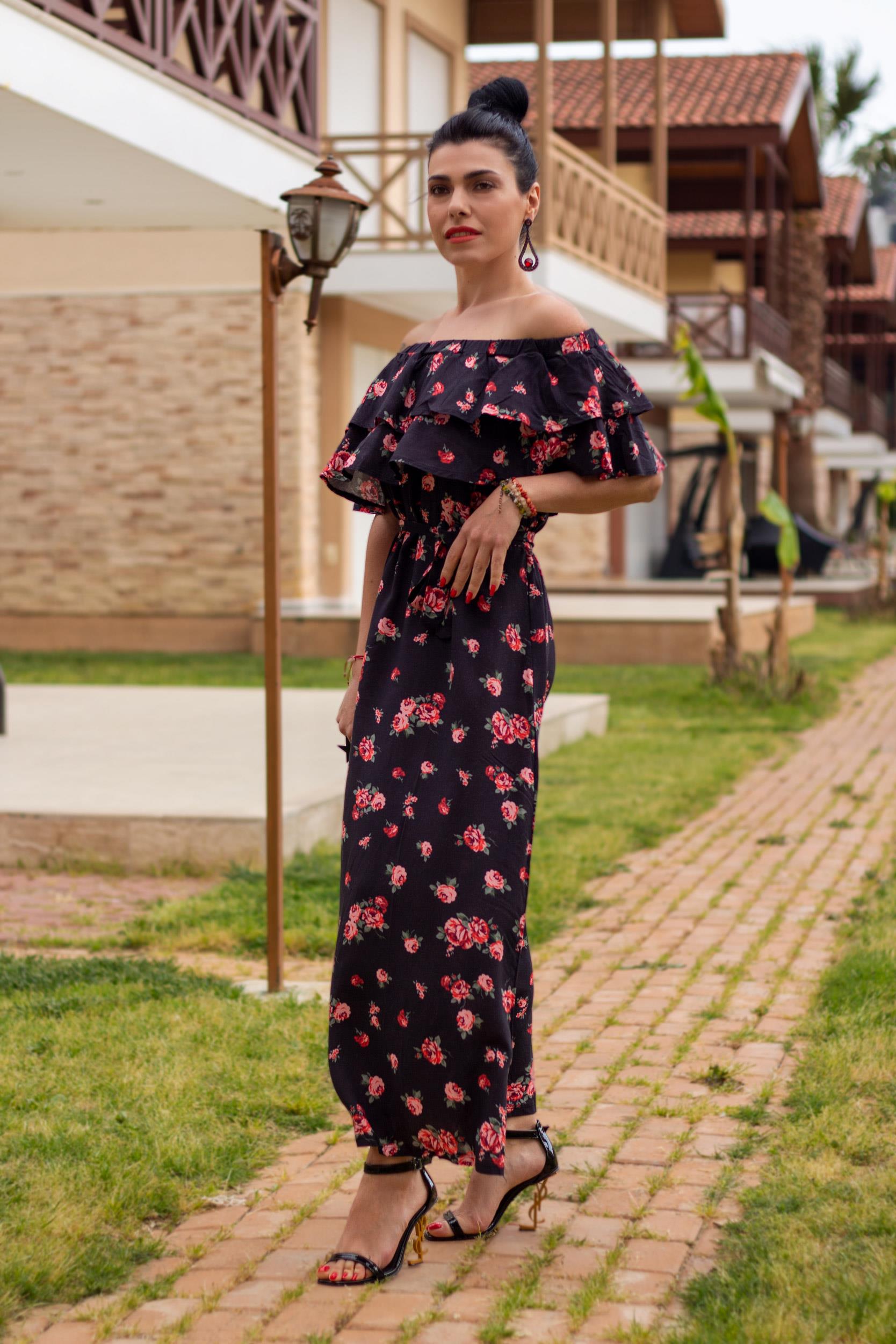 | Etiketler | Kadın Siyah Madonna Yaka Alaçatı Model Bel İpli Gül Desen Uzun Şifon Elbise 22KELBELCA |