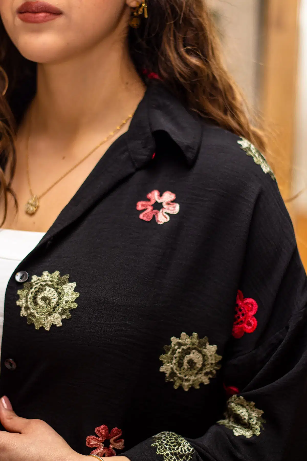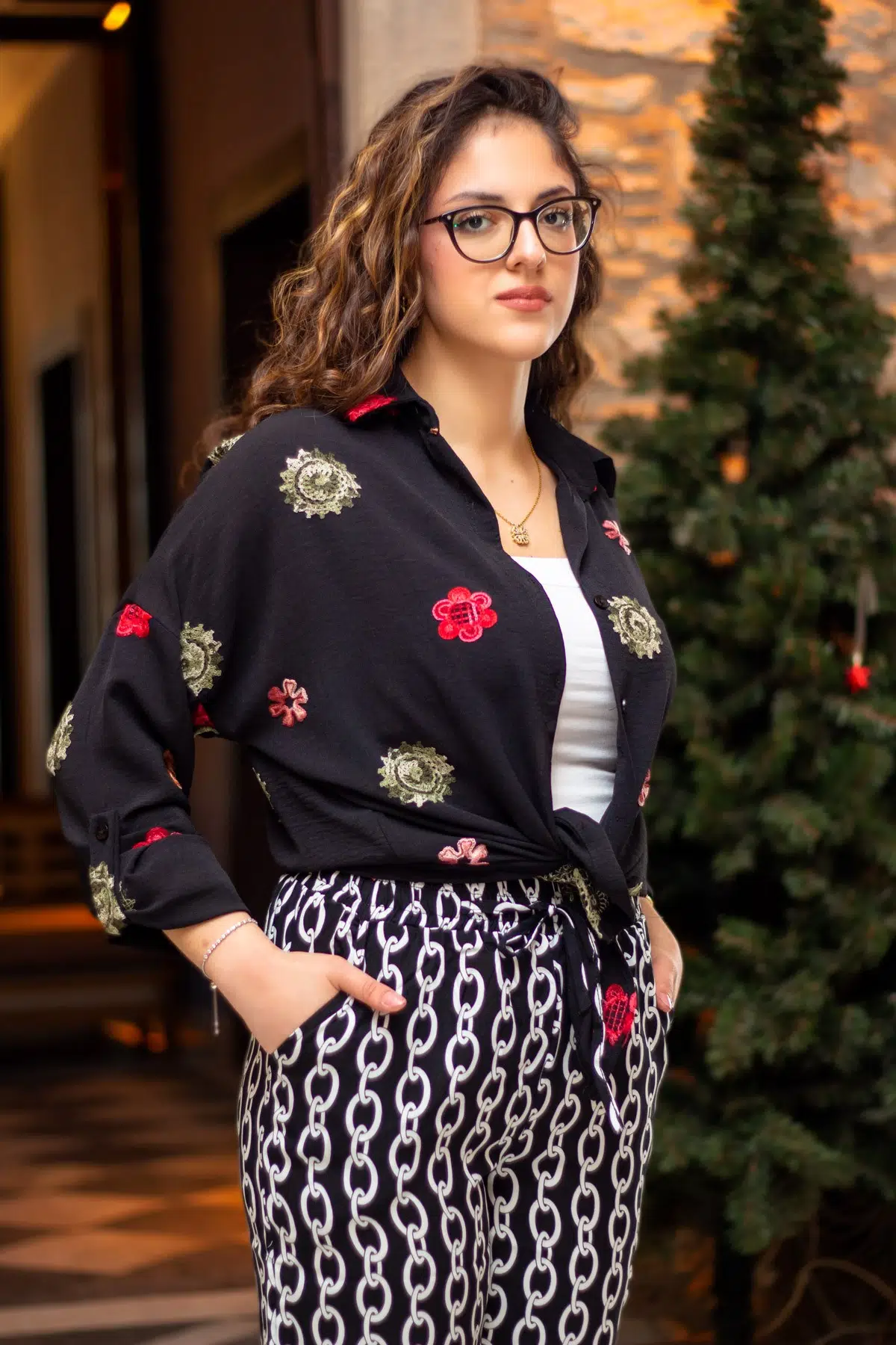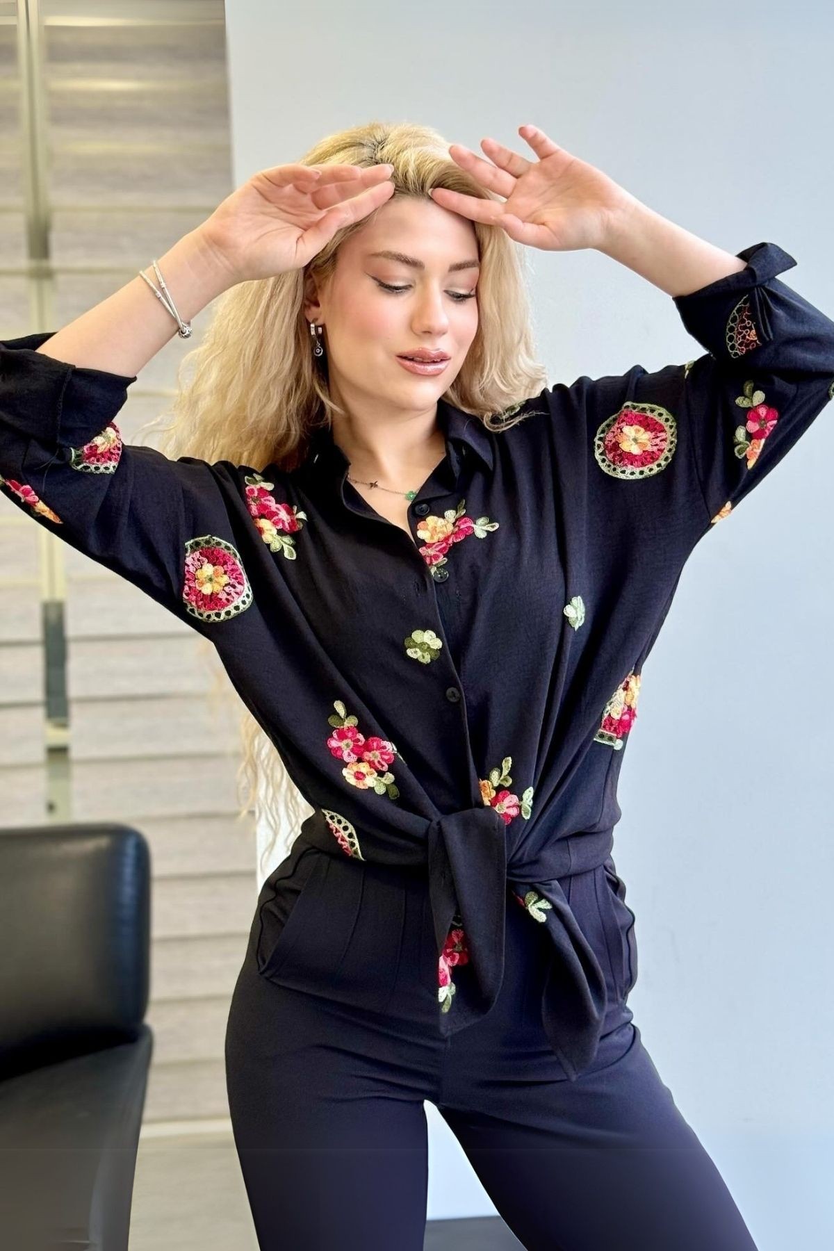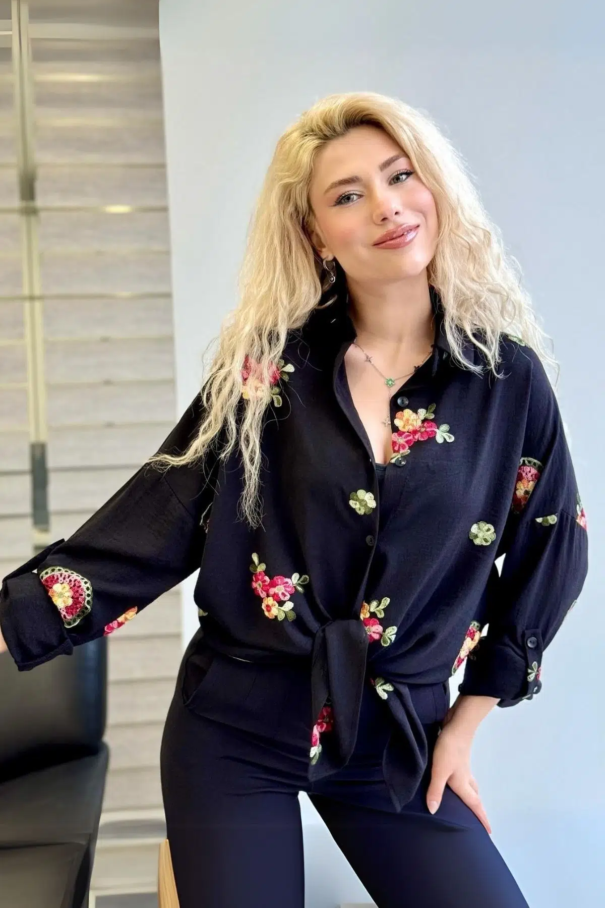 | Etiketler | Kadın Siyah Nalış İşlemeli Oversize Rahat Kalıp Keten Aerobin Gömlek 25KGMLP028 |