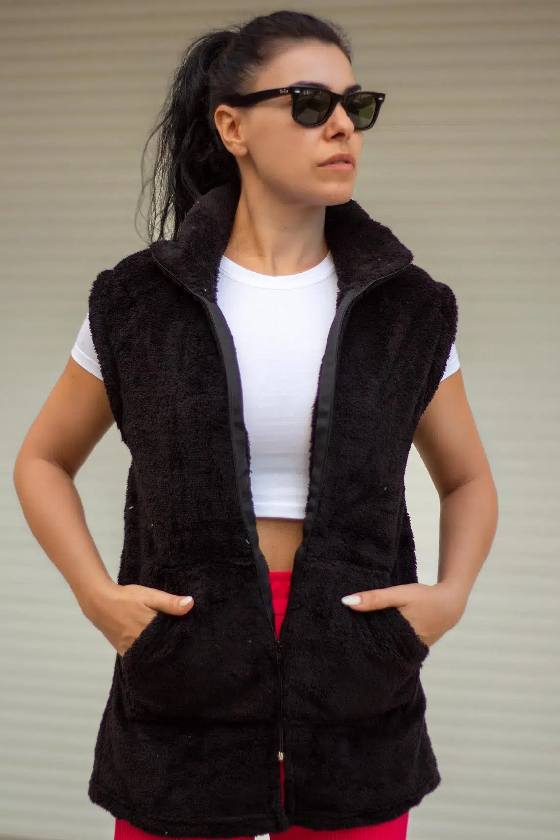 | Etiketler | Kadın Siyah Peluş Welsoft Kalın Fermuarlı Hakim Yaka Yelek 23KYLKMY10 |