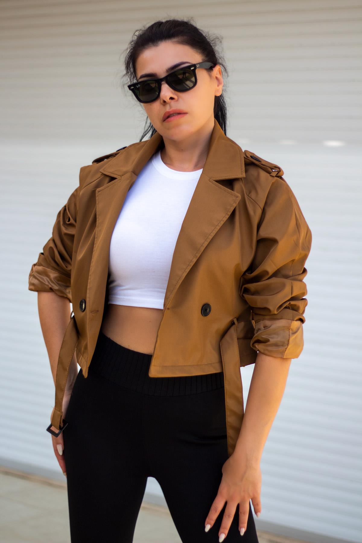 | Etiketler | Kadın Taba Kemer Detaylı Su İtici Kısa Crop Oversize Trençkot 23KTRTP014 |