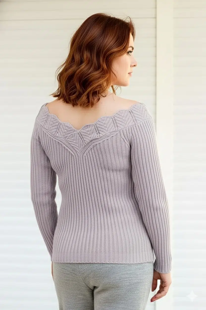 EtiketlerKadın Taş Gri Ön Arka V Yaka Fitilli Tiko Kazak 20KKZKVALK