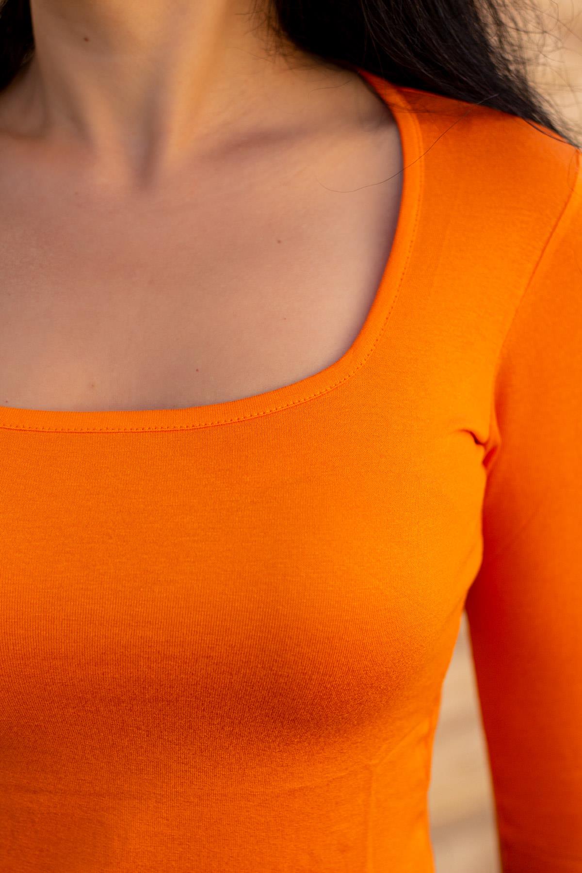 Kadın Turuncu Uzun Kollu %100 Pamuk Kare Yaka İnce Body 20KBDYBKRE