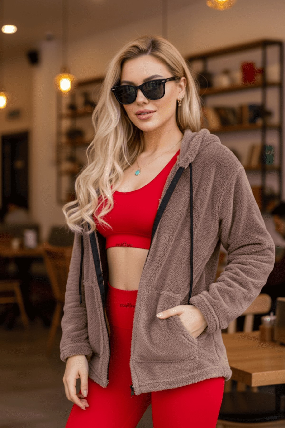 Welsoft esnek kumaş, fermuarlı ve kapüşonludır. | Welsoft stretchy fabric, zippered and hooded.