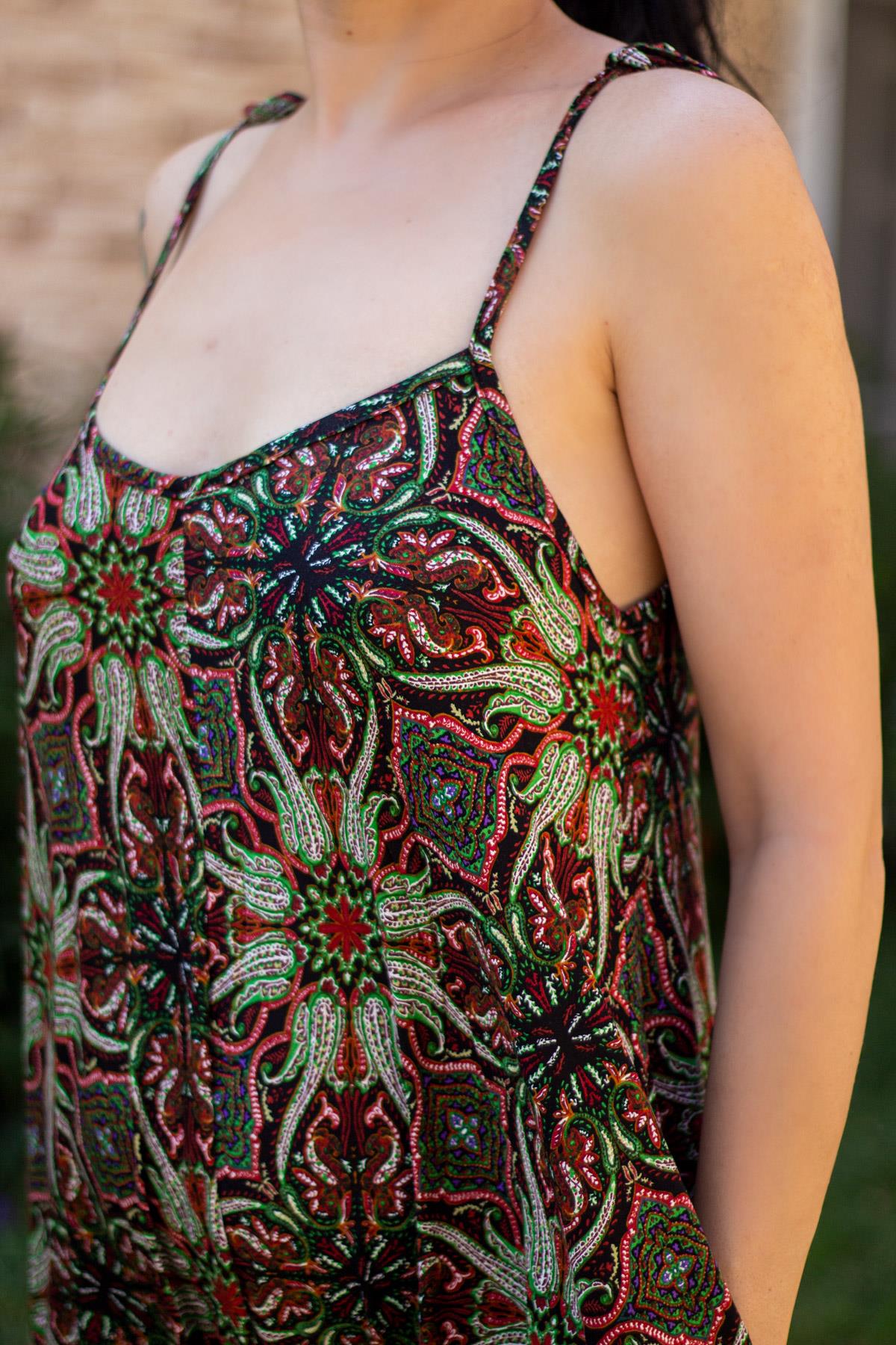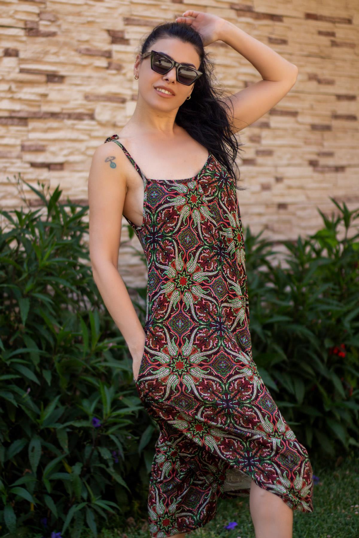 Kırmızı Askılı Cepli Salaş Rahat Kadın Şalvar Tulum Elbise 22KELBASSA