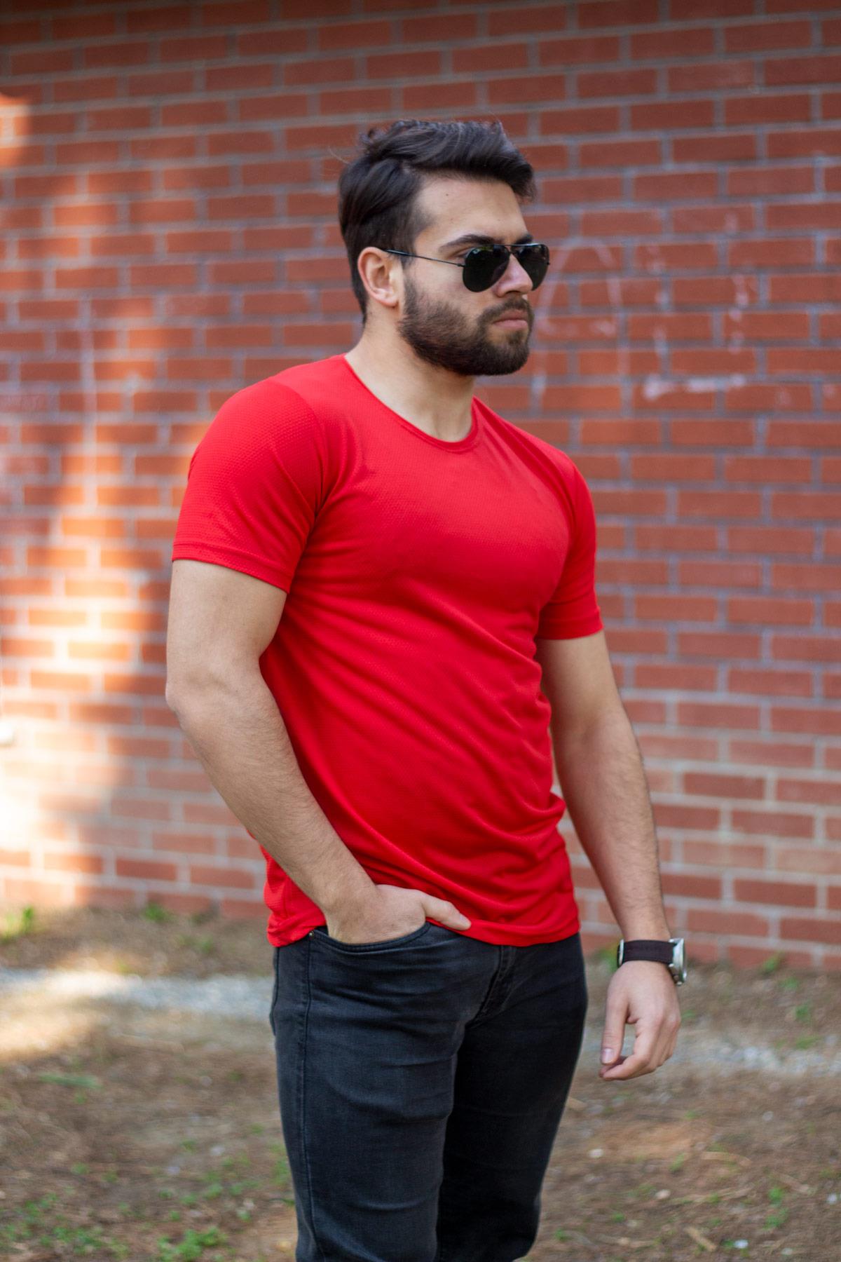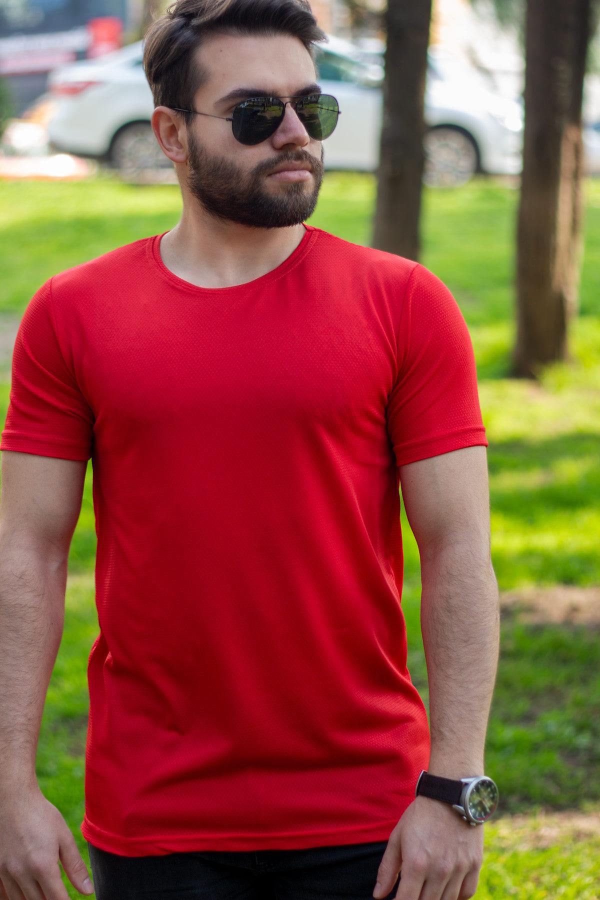Kırmızı Basic Rahat İnce Petek Kumaş Spor Erkek Tshirt 22ETSHPORT