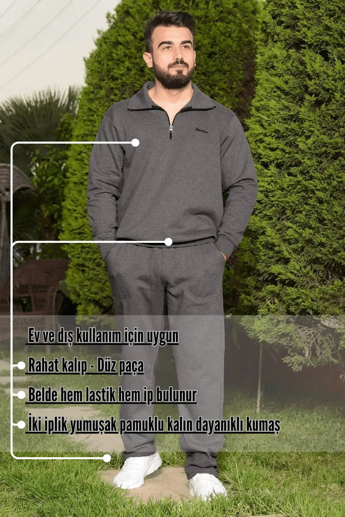 | Etiketler | Koyu Gri Battal Büyük - Normal Beden Bol Paça Yarım Fermuarlı Pamuklu Erkek Eşofman Takımı 21EESTYAKT |