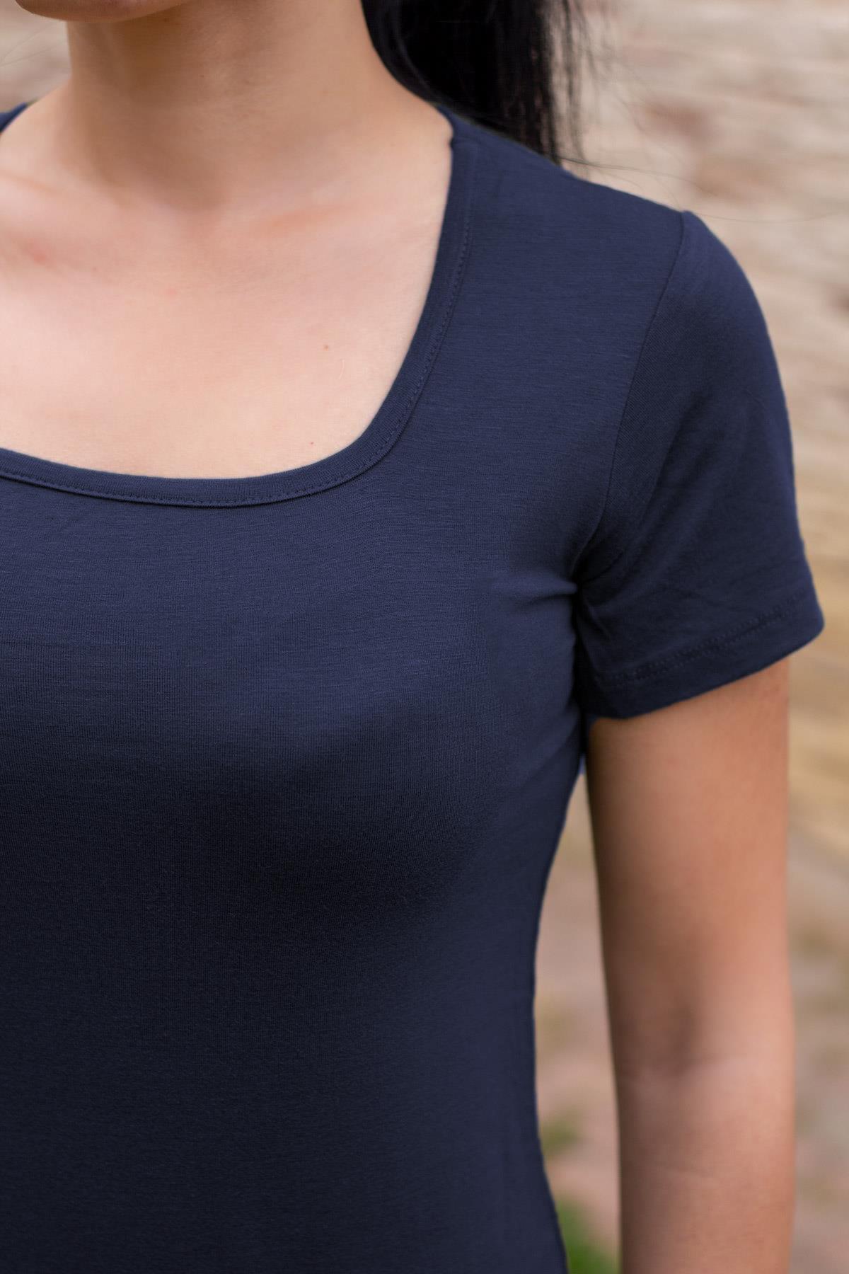 Lacivert Kısa Kollu Pamuk Kare Yaka İnce Kadın Body 21KBDYKKRE