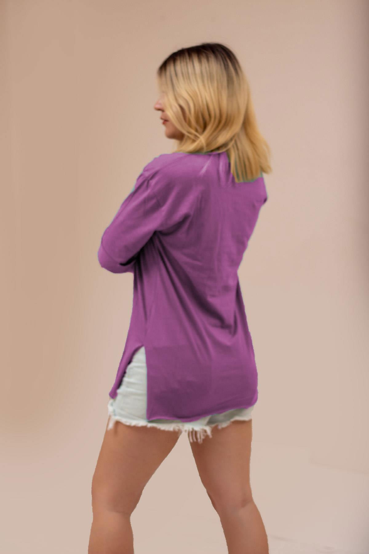 | Etiketler | Lila Good Day Better Night Yazılı Yırtmaçlı Doble Kol Kadın Tişört 22KTSHGOOD |