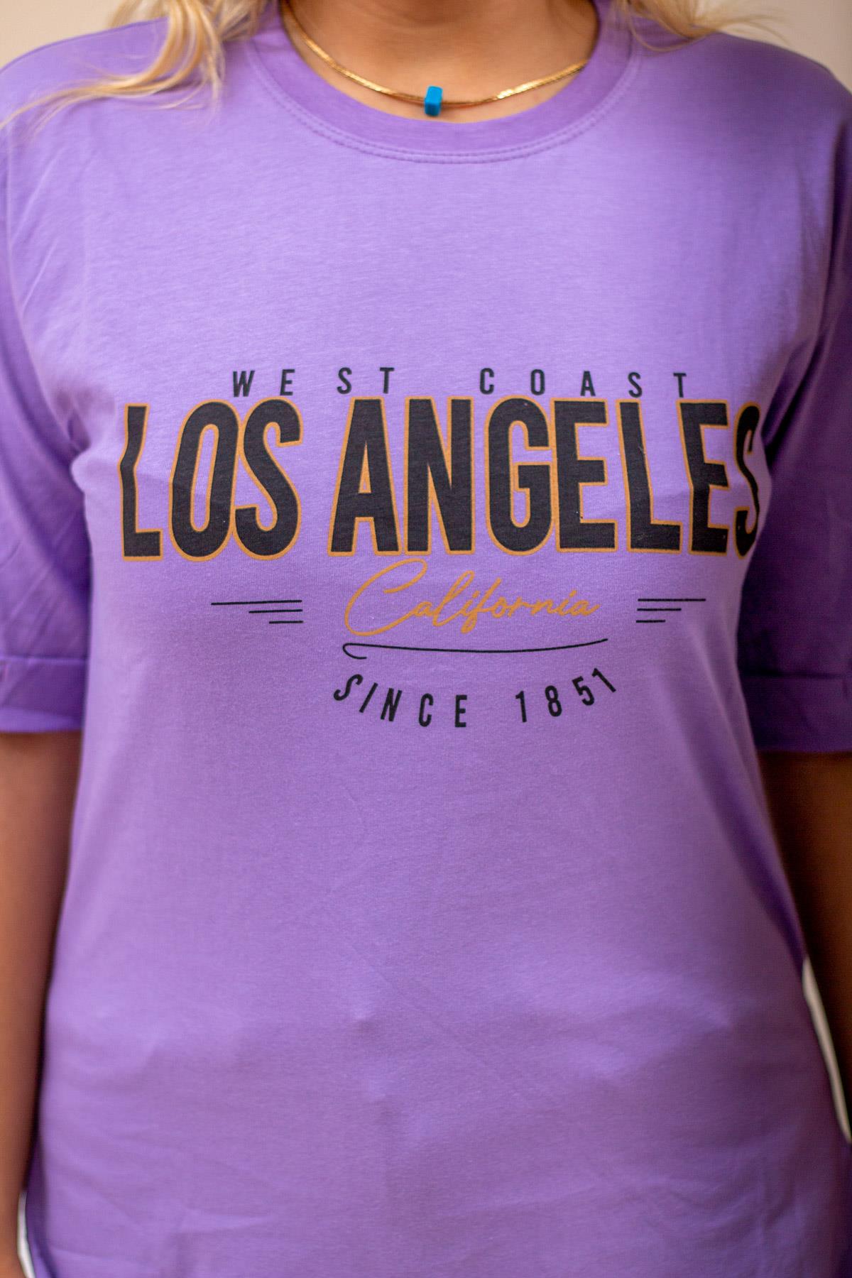 | Etiketler | Lila Los Angeles Baskılı Yırtmaçlı Duble Kol Kadın Tişört 22KTSHLOSE |