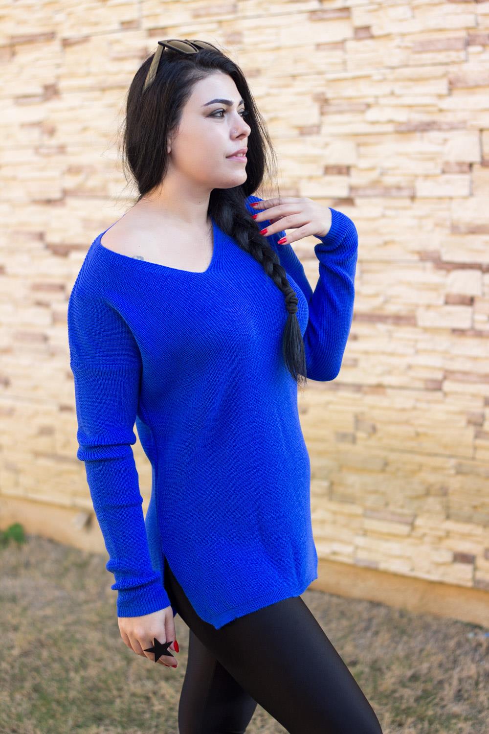 Mavi Saks V Yaka Yırtmaçlı Fitilli Triko Kadın Kazak 20KKZKYRTC