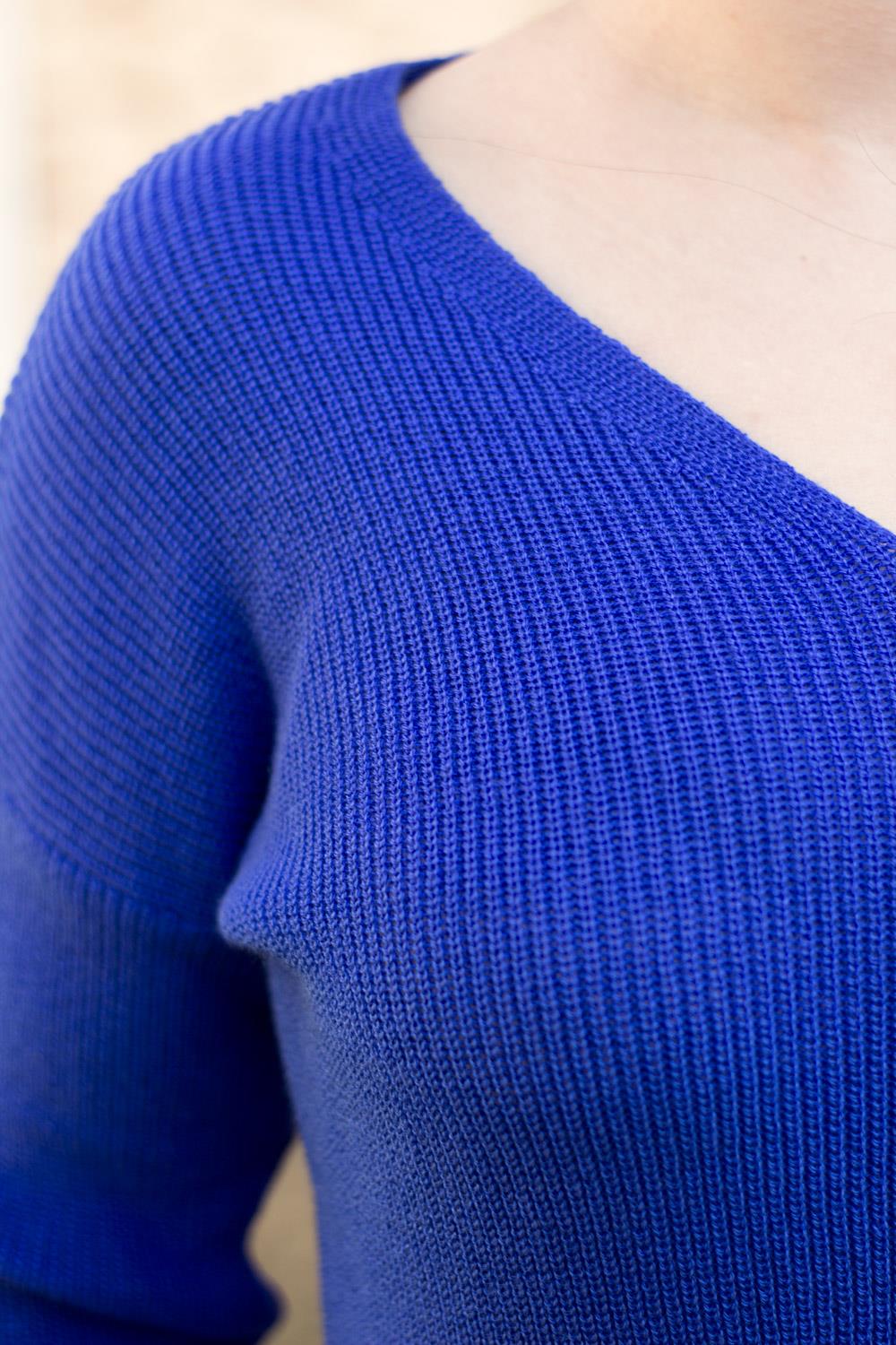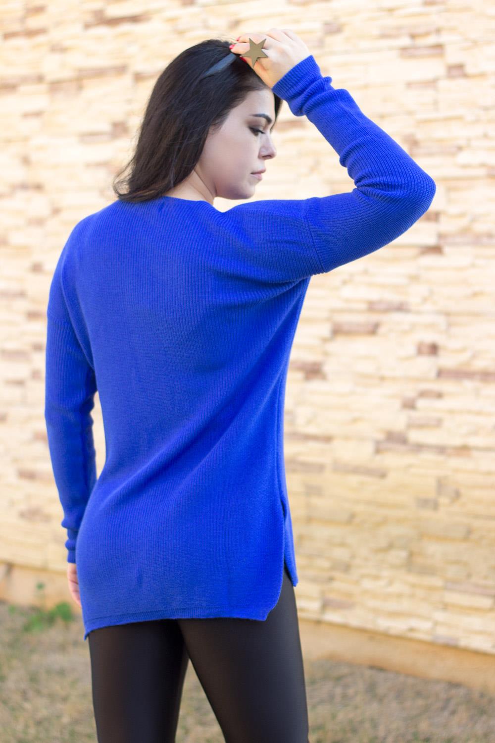 EtiketlerMavi Saks V Yaka Yırtmaçlı Fitilli Triko Kadın Kazak 20KKZKYRTC