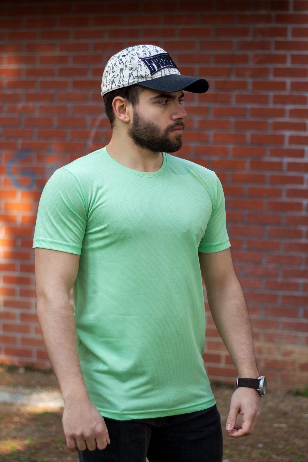 Yeşil Basic Rahat İnce Petek Kumaş Spor Erkek Tshirt 22ETSHPORT