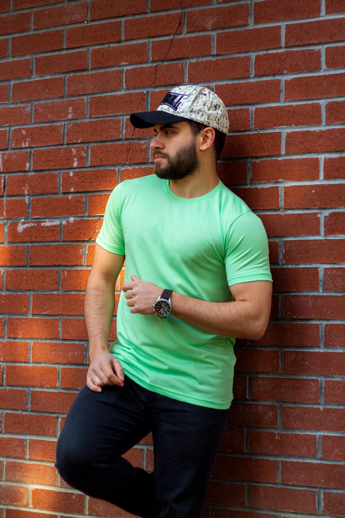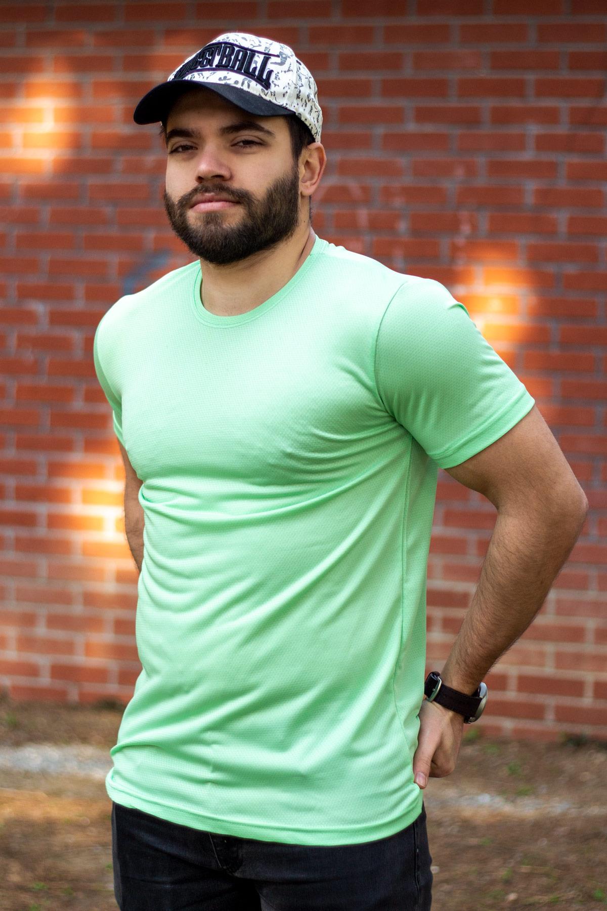 Neon Yeşil Basic Rahat İnce Petek Kumaş Erkek Spor Tshirt 22ETSHPORT
