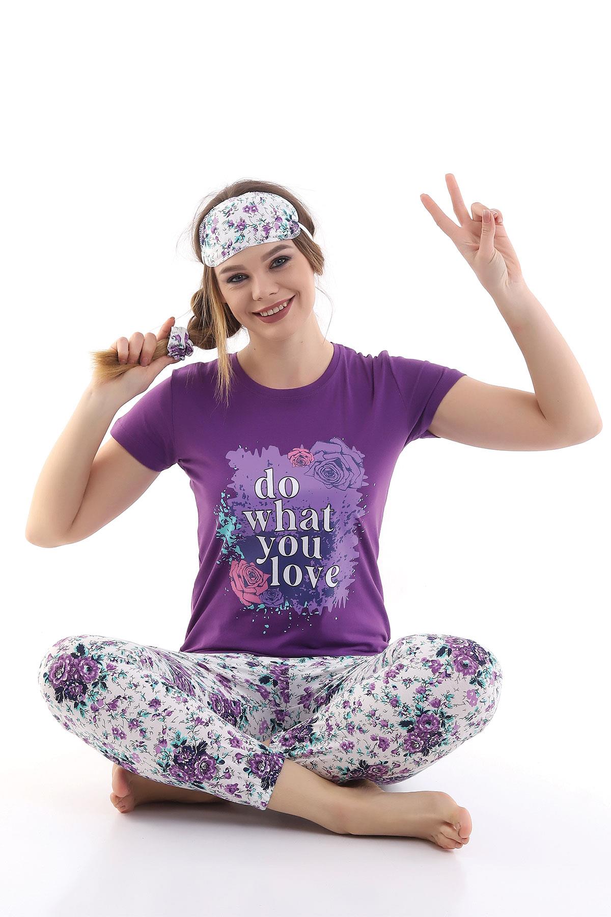| Etiketler | Mor Gül Desenli İnce Kısa Kollu Paça Lastikli Kadın Pijama Takımı 22KPJTGULL |