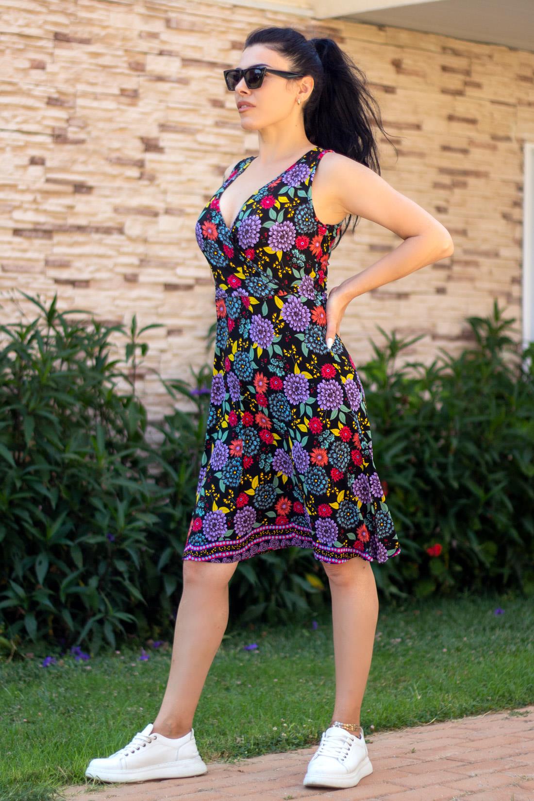 Mor Kruvaze V Yaka Sıfır Kol Kadın Elbise 22KELBVELS