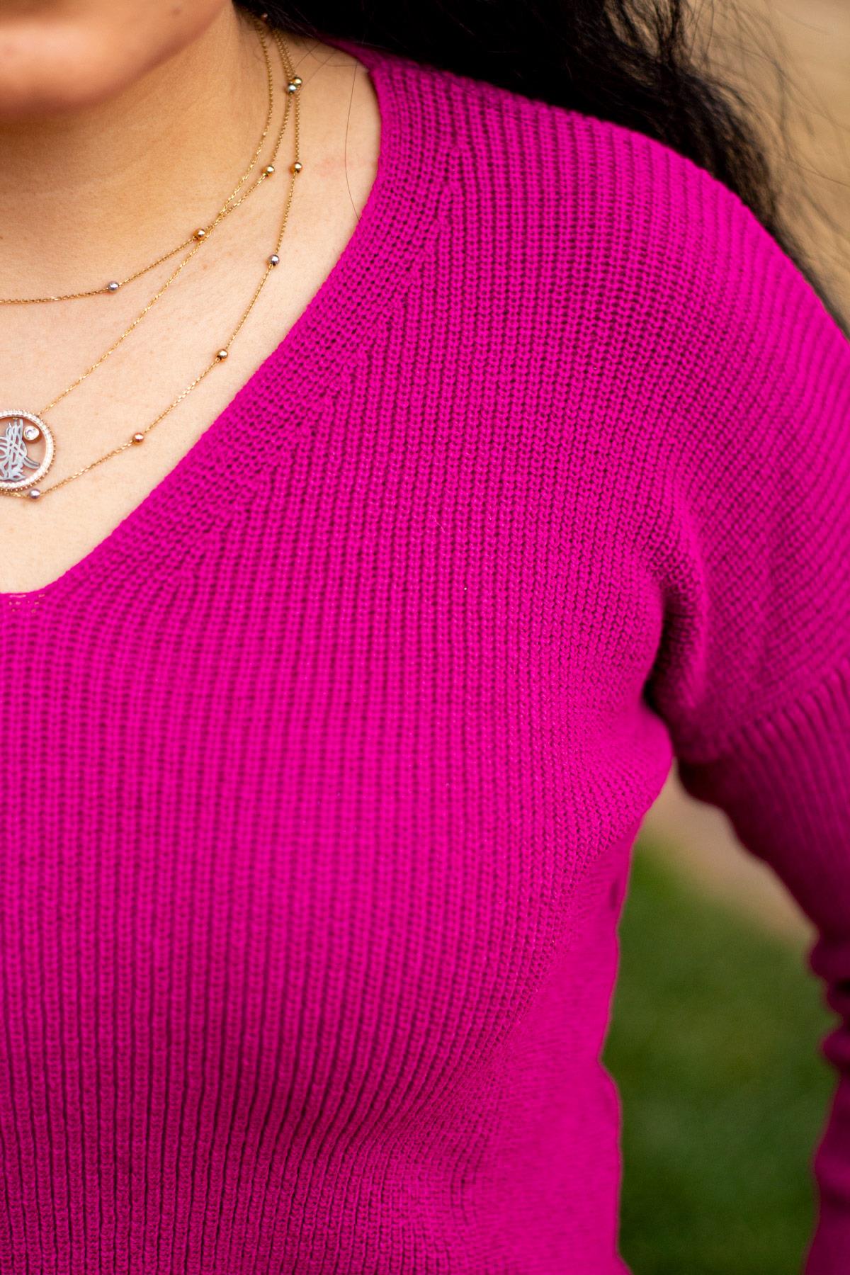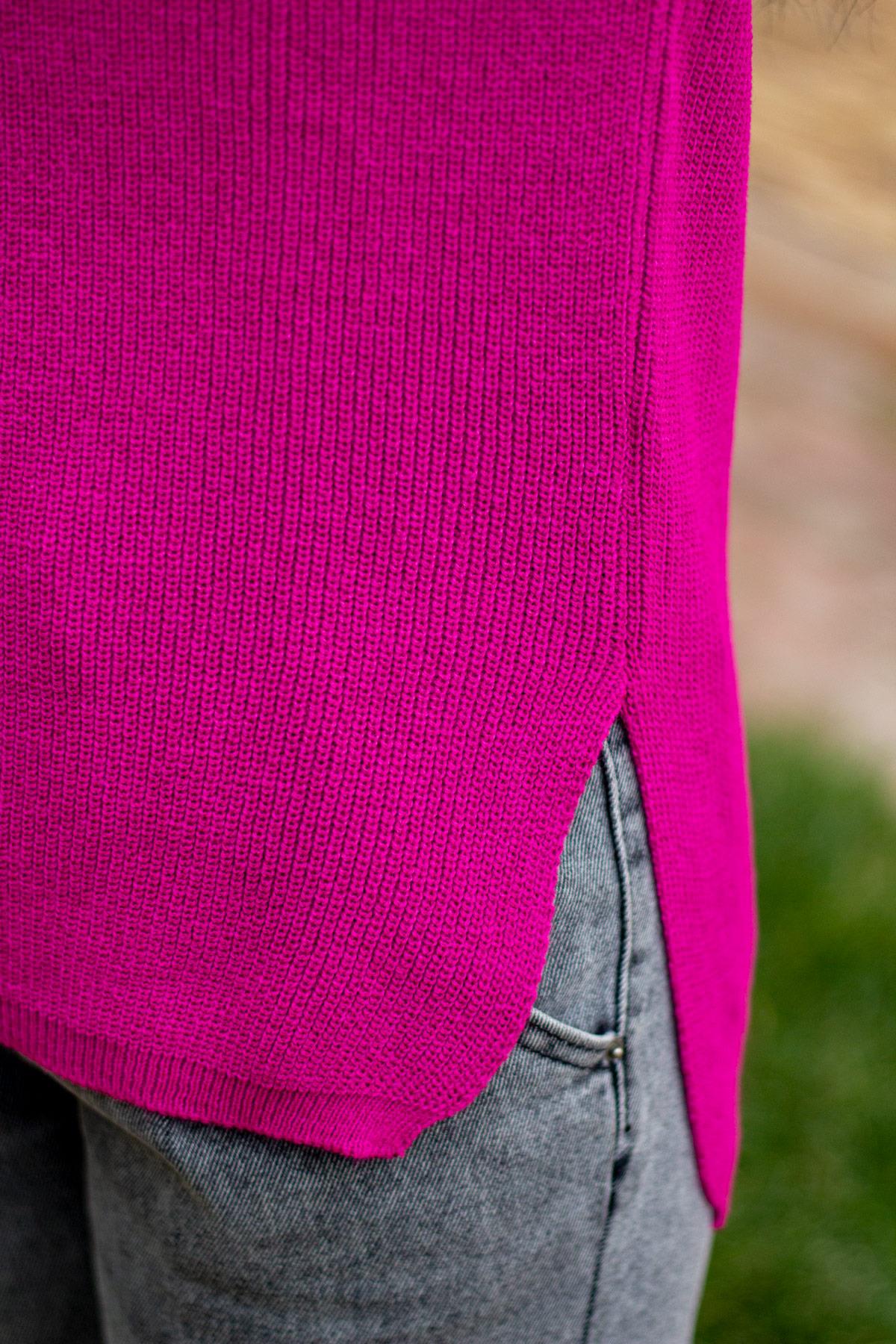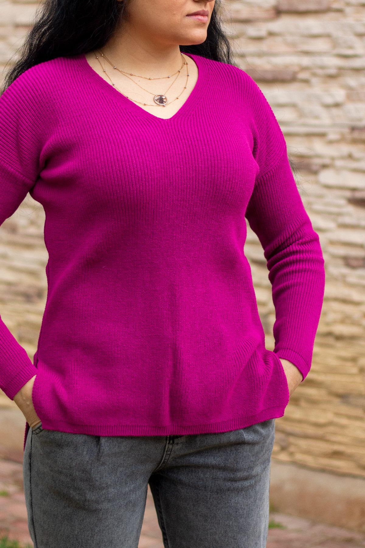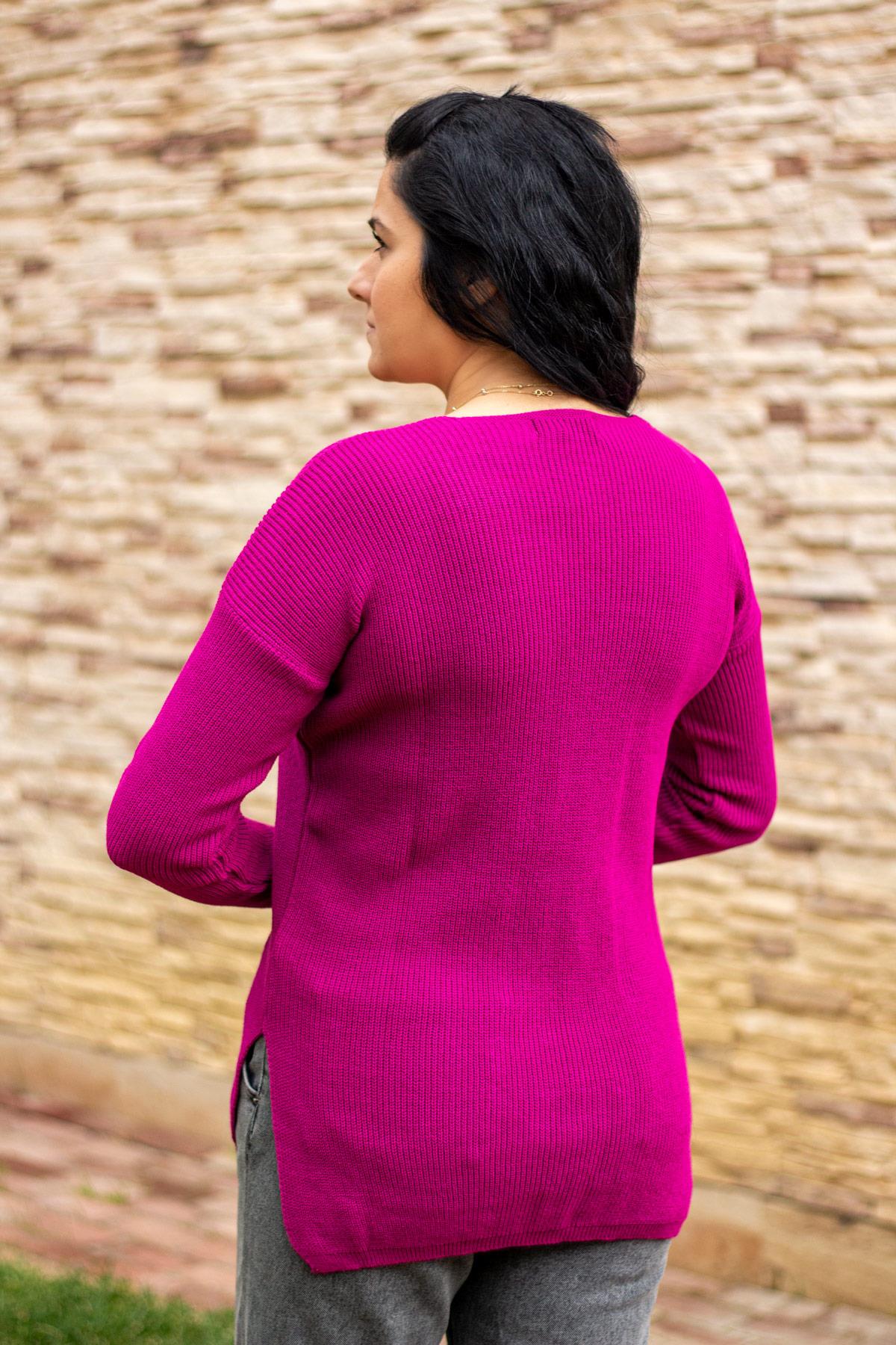 EtiketlerMürdüm V Yaka Yırtmaçlı Fitilli Tiko Kadın Tunik Kazak 20KKZKYRTC