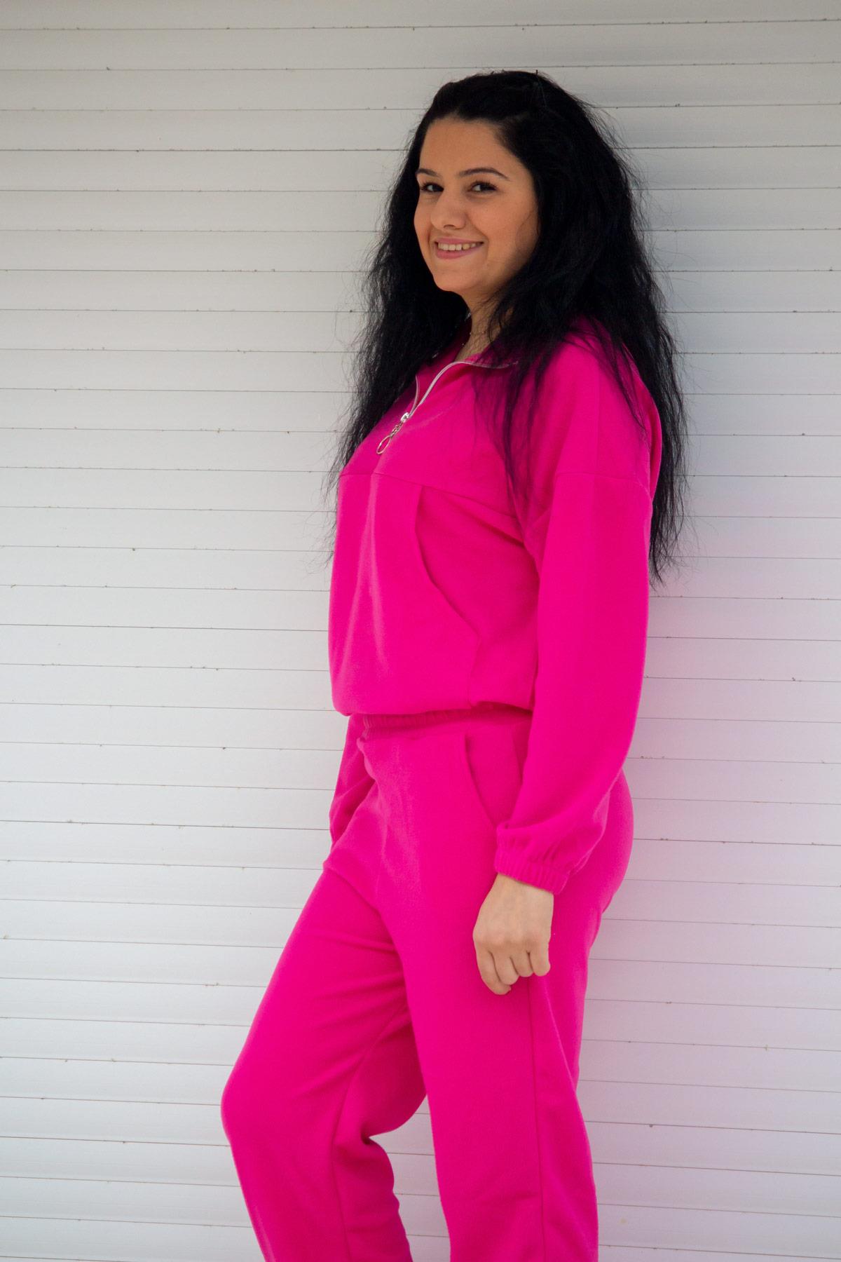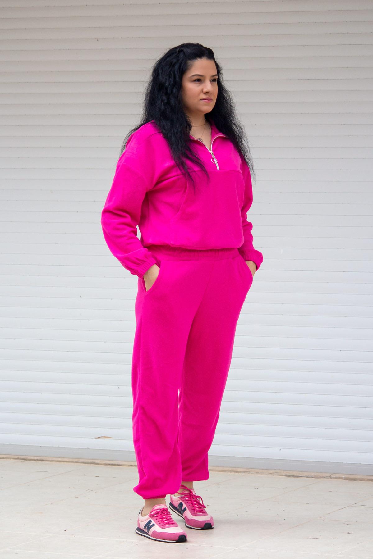 | Etiketler | Pembe Fuşya Fermuarlı Crop Kanguru Cep Polar Kadın Eşofman Takımı 21KESANEWE |