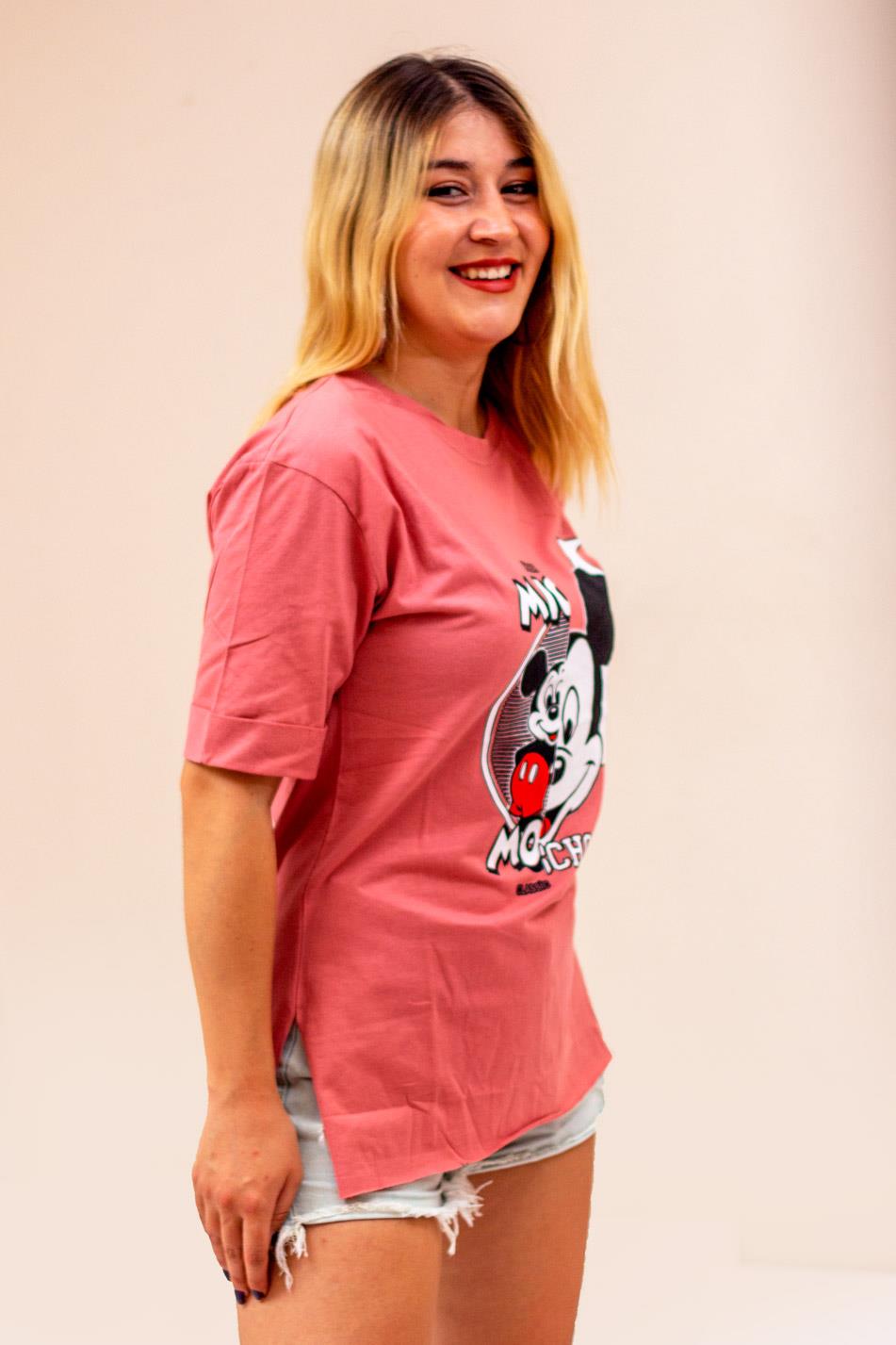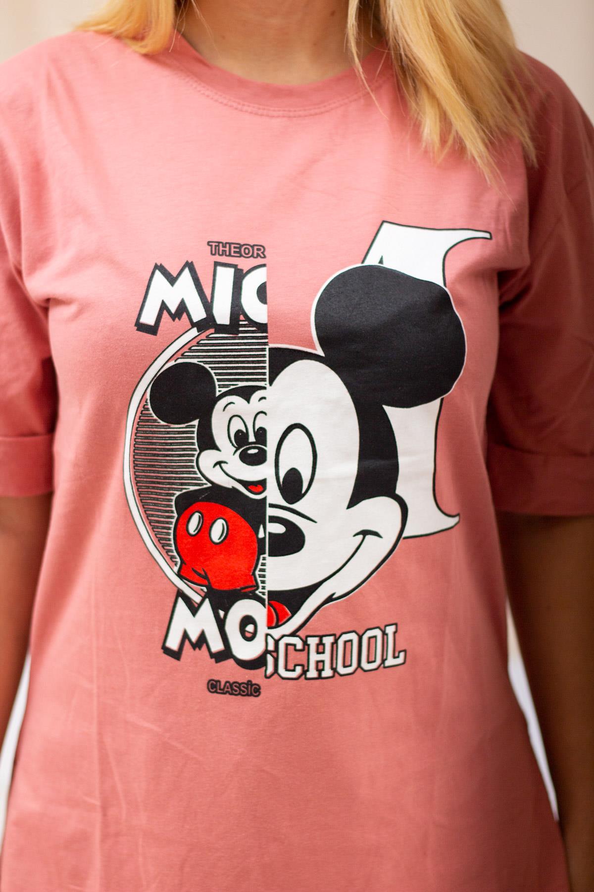 | Etiketler | Pembe Mickey Mouse Baskılı Yırtmaçlı Duble Kol Kadın Tişört 22KTSHMICK |