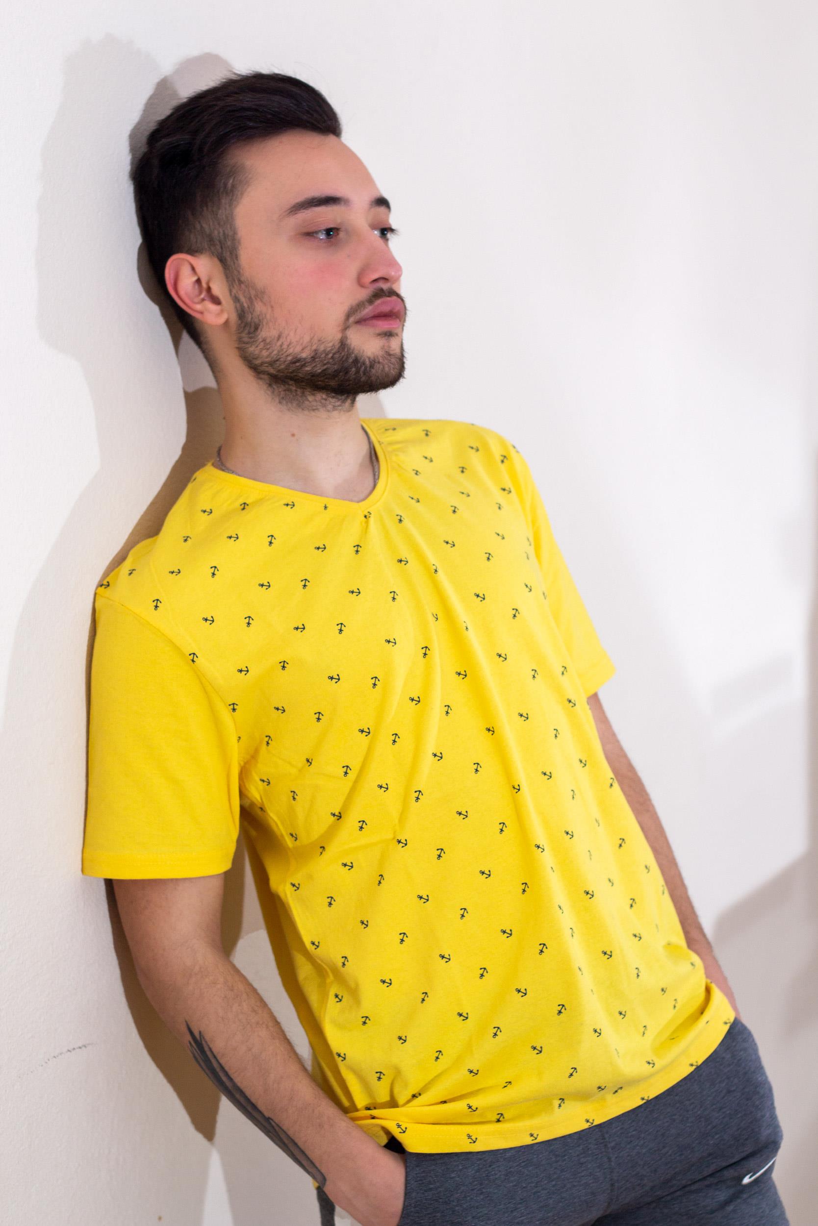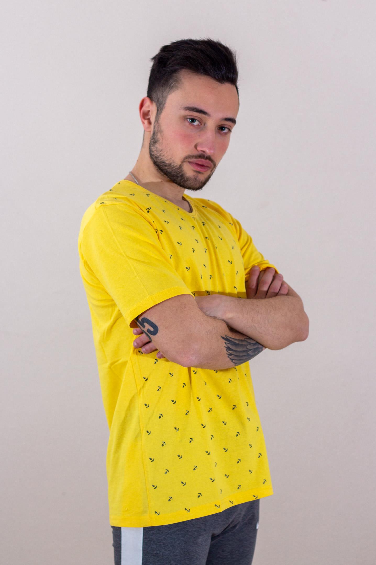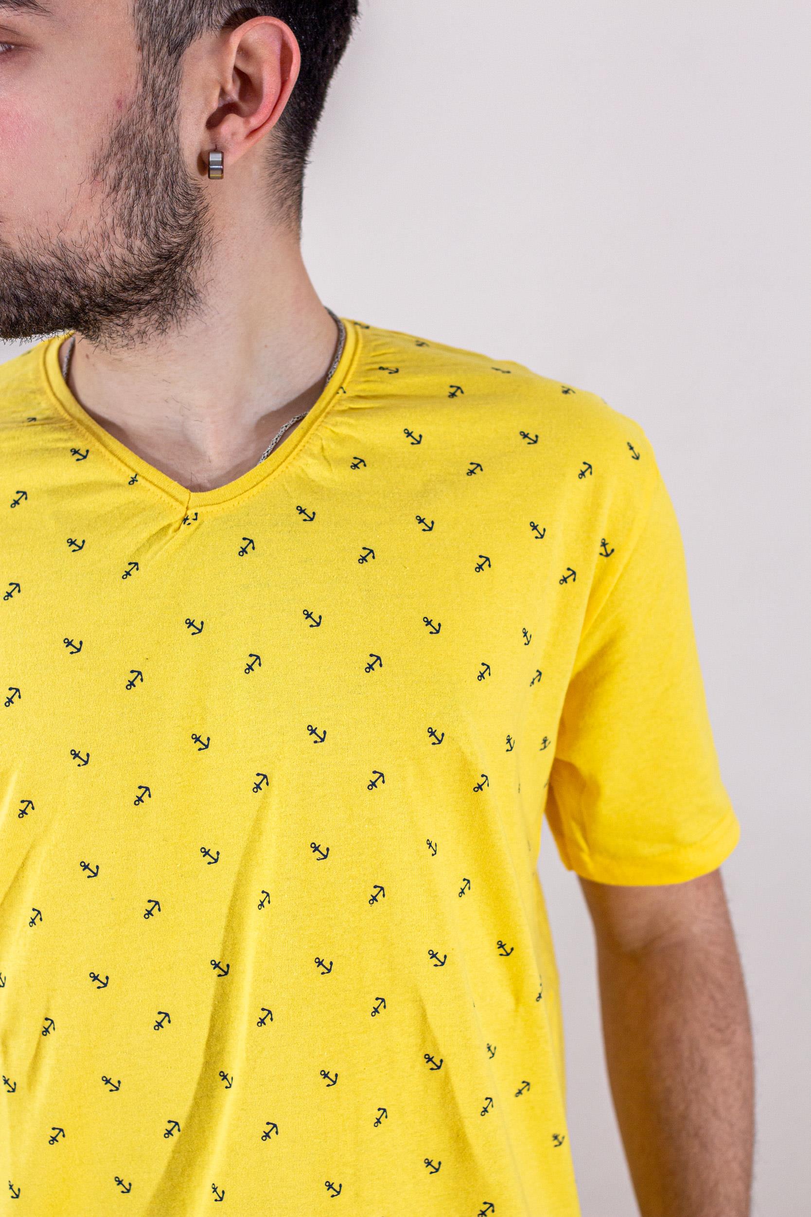 EtiketlerSarı Çapa Baskılı Kısa Kollu V Yaka Erkek Tişört 22ETSHVCPA