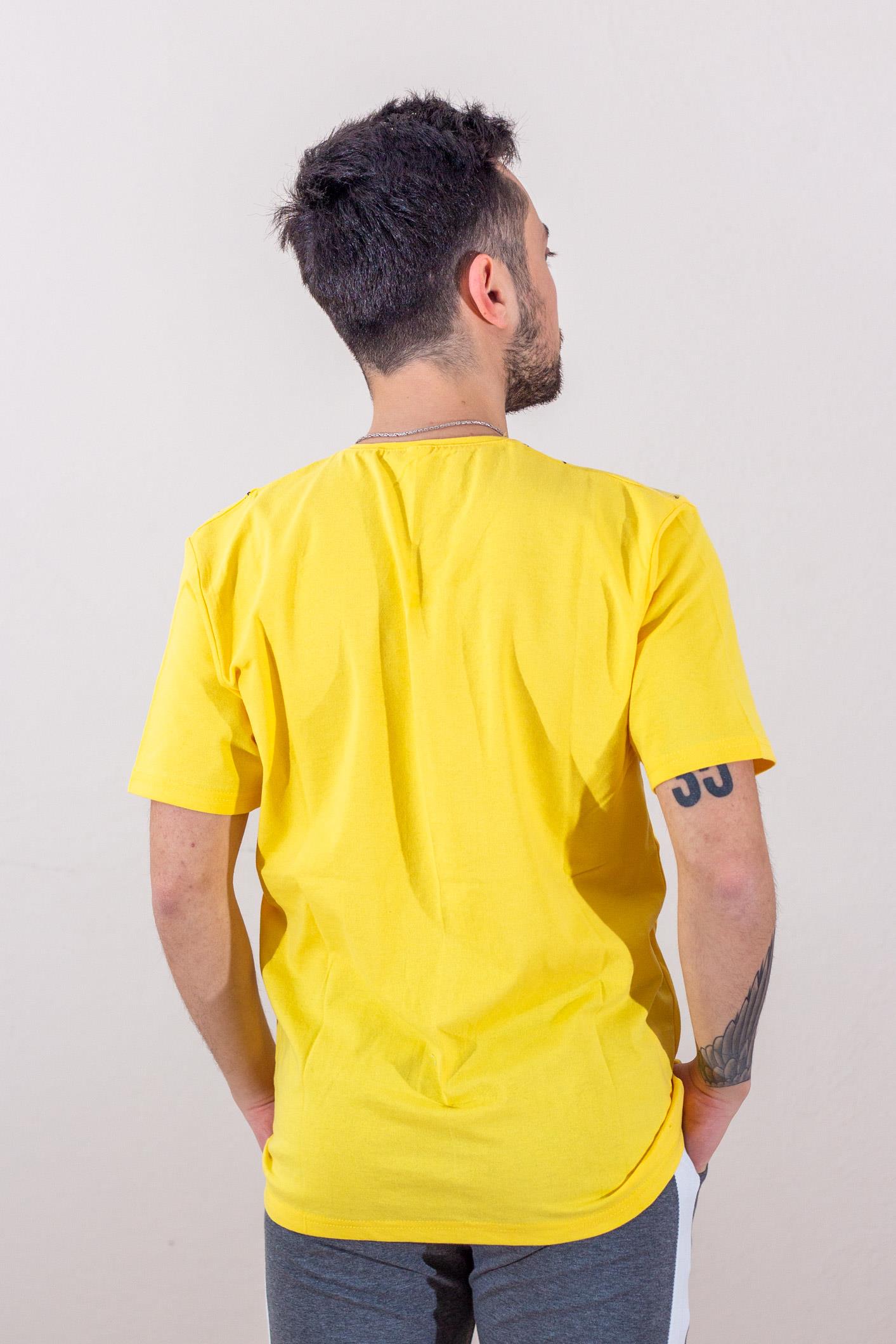 Sarı Çapa Baskılı Kısa Kollu V Yaka Erkek Tişört 22ETSHVCPA