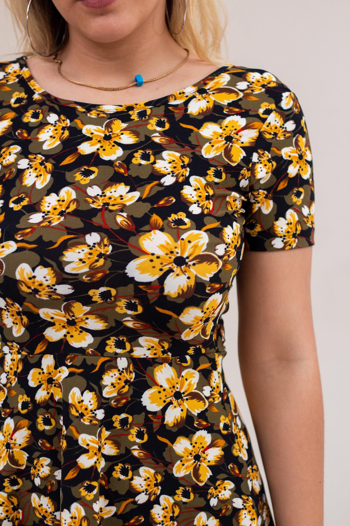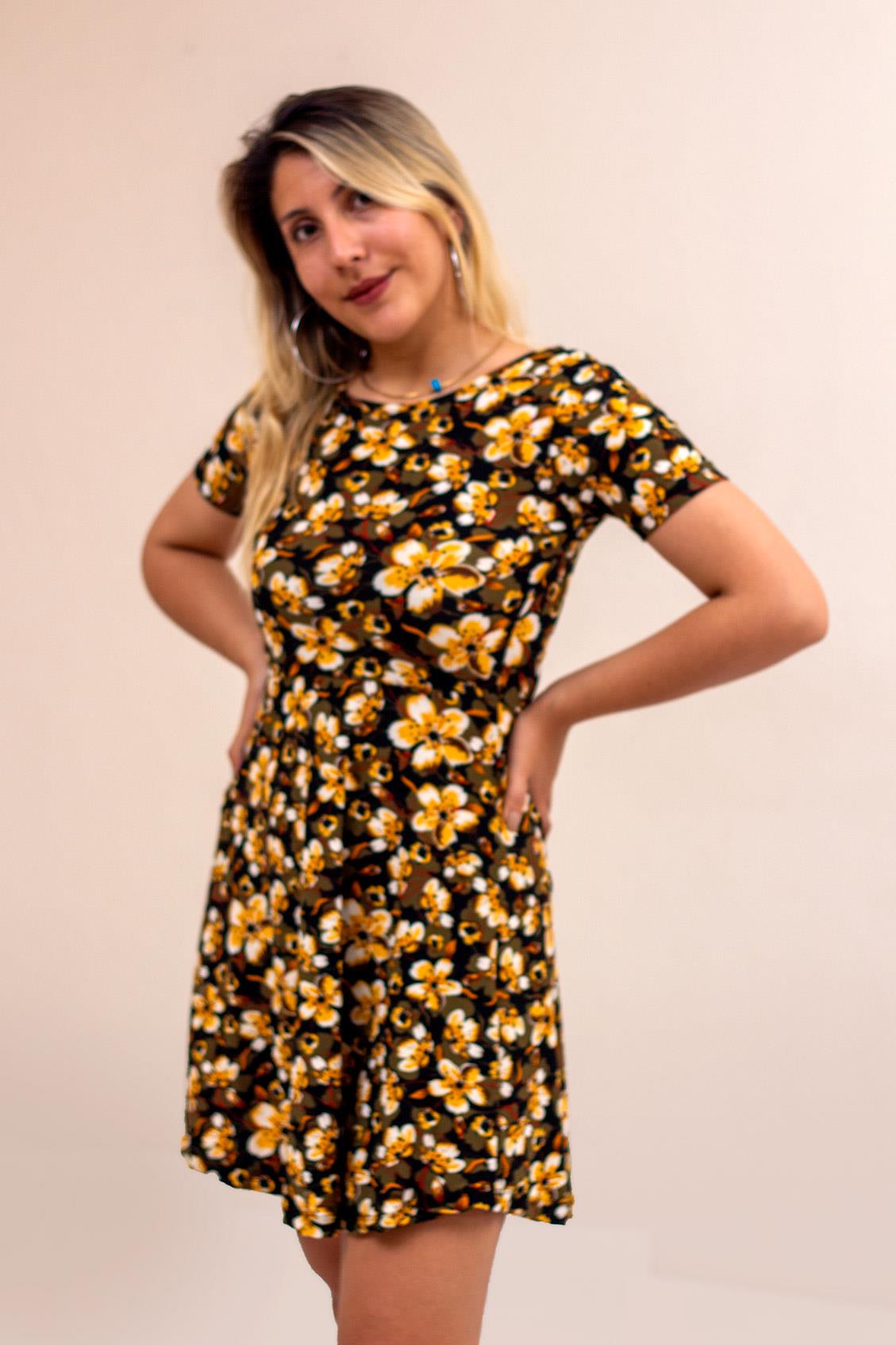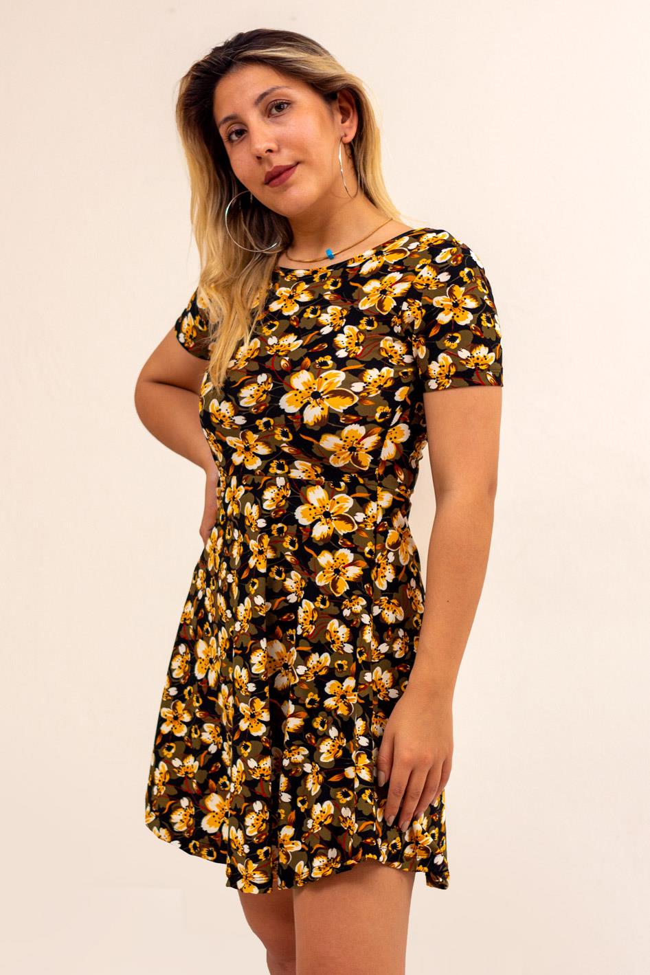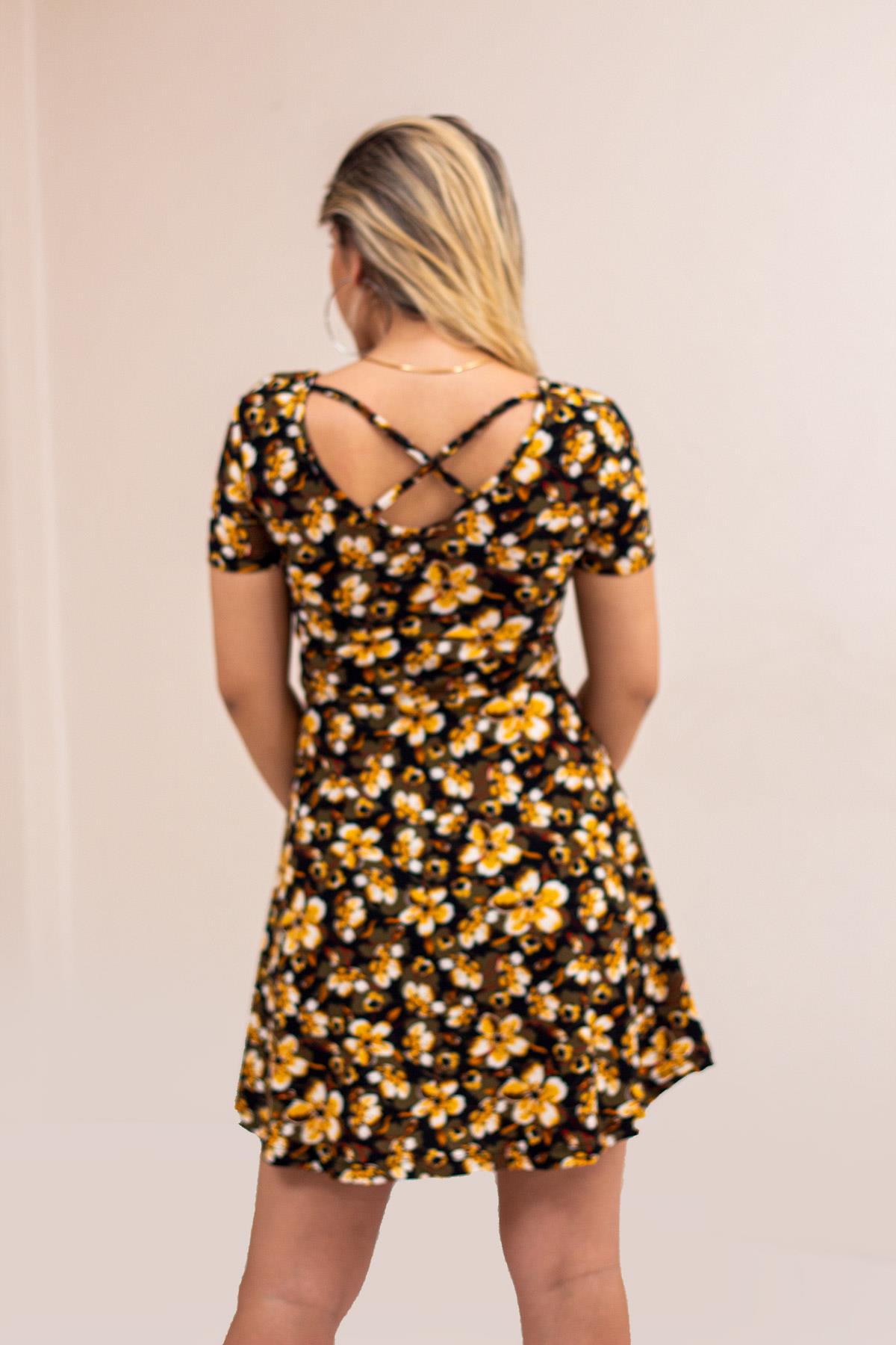 Sarı Çiçek Desen Esnek Sırt Çapraz İpli Elbise 22KELBKCCKModel üstündeki beden : S