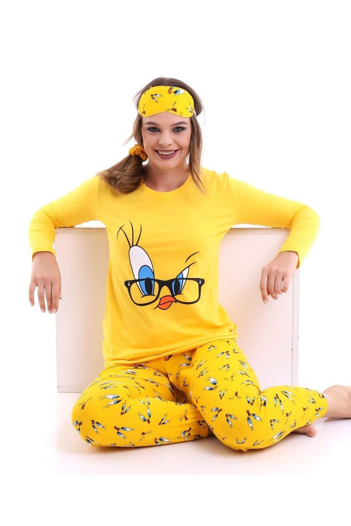 | Etiketler | Sarı Gözlüklü Tweety Baskılı Uzun Kollu Bilek Lastikli Kadın Pijama Takımı 22KPJTTEWT |