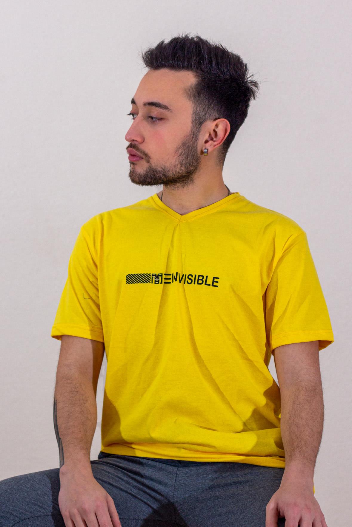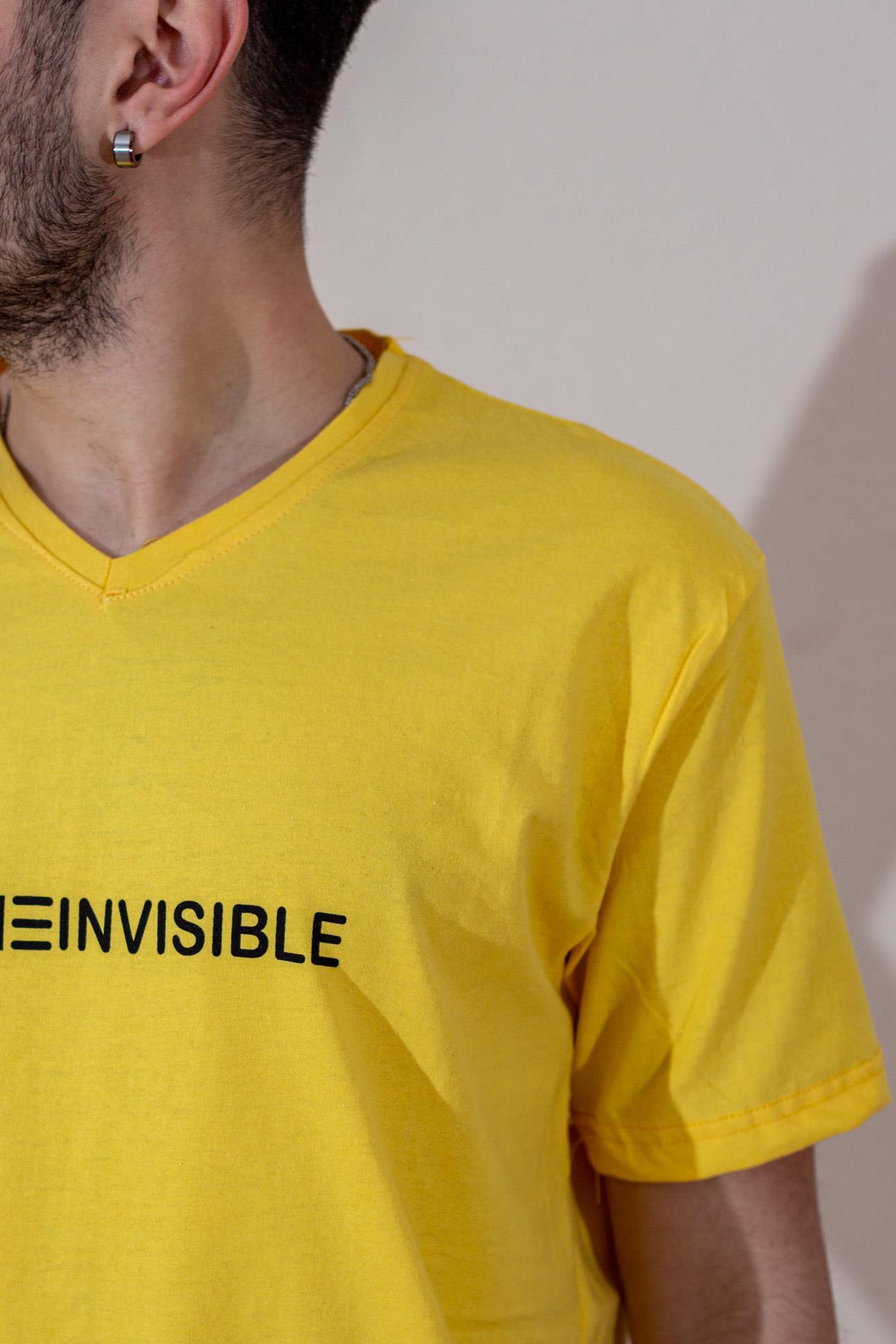 EtiketlerSarı Invisible Baskılı Kısa Kollu V Yaka Erkek Tişört 20ETSHNVSB