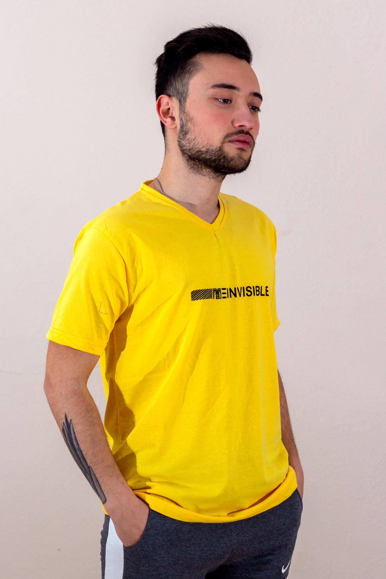 Sarı Invisible Baskılı Kısa Kollu V Yaka Erkek Tişört 20ETSHNVSB